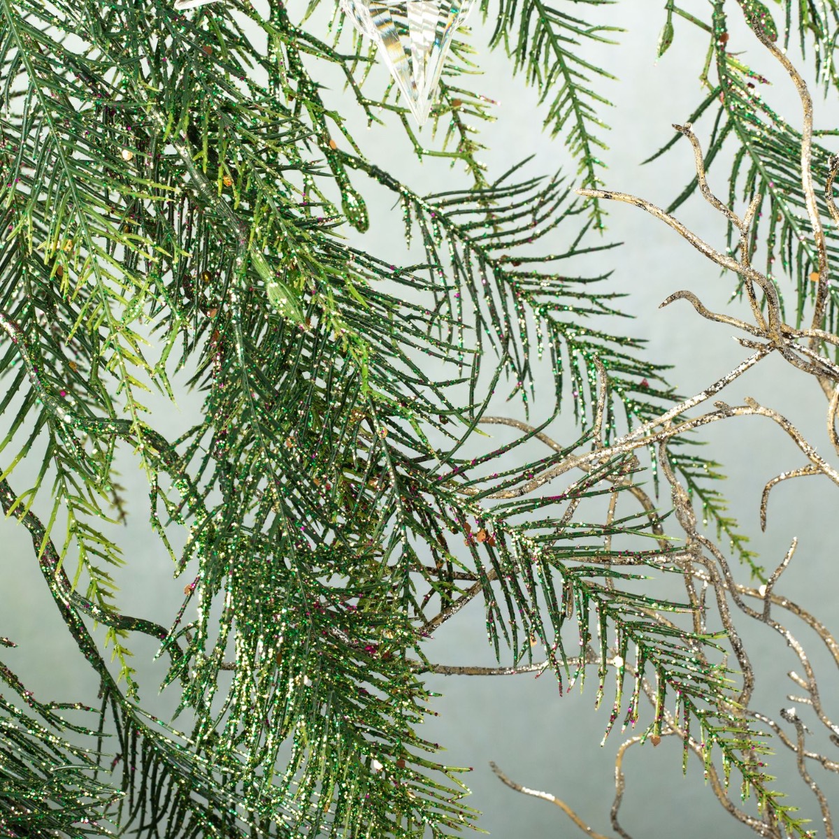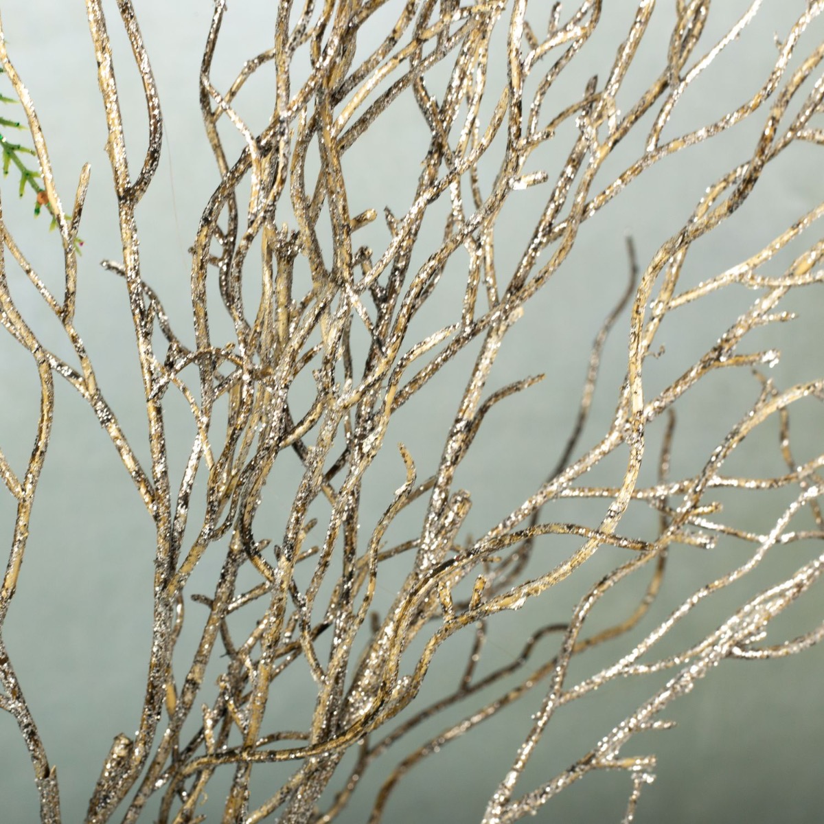 Argenté et scintillant ! Notre look de l'Avent est particulièrement raffiné et peut également être utilisé comme couronne de l'Avent grâce à ses 4 grandes bougies pilier. Une couronne de l'Avent classique est toujours conçue en forme d'anneau. La foi catholique décrit ainsi la résurrection et l'éternité de la vie. Notre anneau métallique n'a pas besoin d'être fixé pour être mis en place et convient également après la période de Noël pour de superbes idées de décoration. Il a été décoré de branches scintillantes et de suspensions de sapin de Noël. Le plateau en bois gris a été rempli de notre mousse naturelle verte, car le vert représente l'espoir et la vie. Ce look est un début exceptionnel pour la période de Noël. Shop the look!