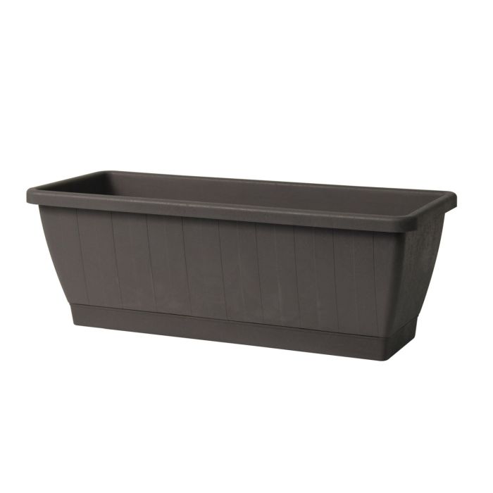 Bac à fleurs pour balcon OPHIRA en plastique recyclé, réserve d'eau, soucoupe, anthracite, 49,5x19,5x17,5cm