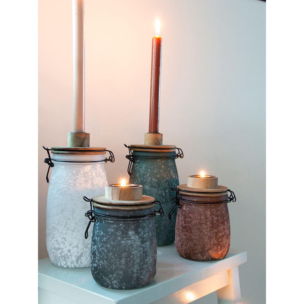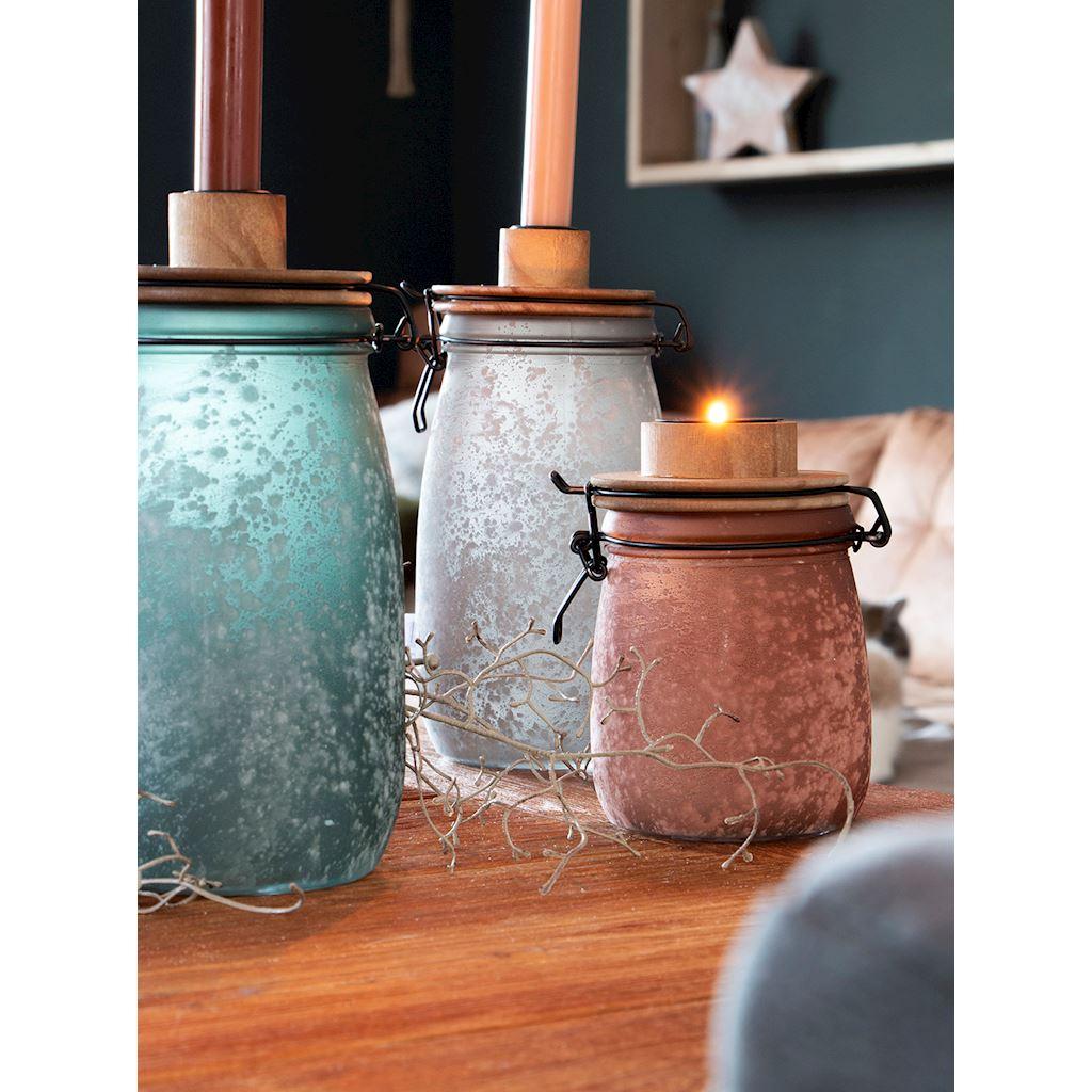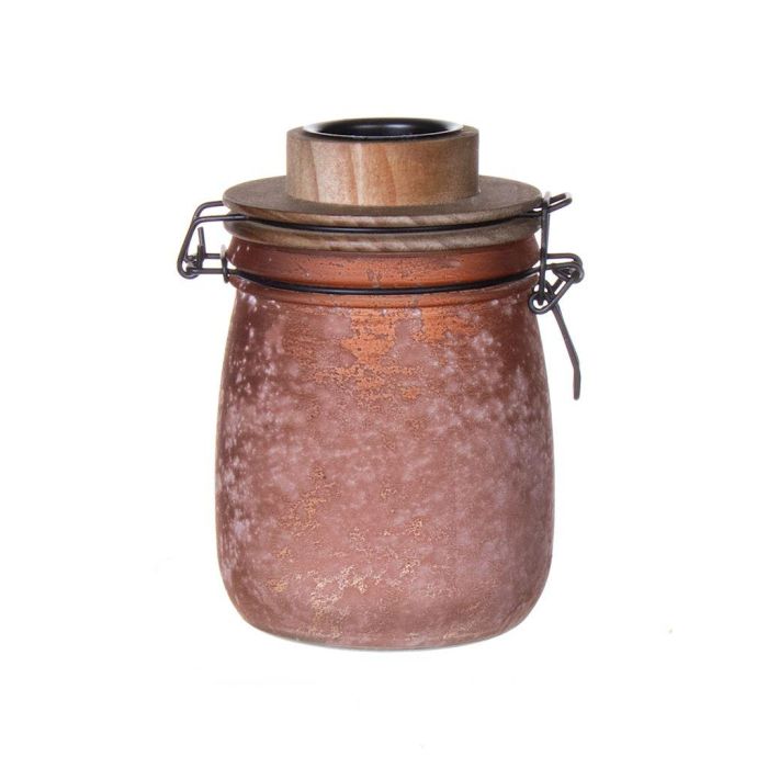 Bocal de stockage ANNEDORE avec porte-bougie à chauffe-plat, aspect givré, ambre, 15,5cm, Ø10,5cm