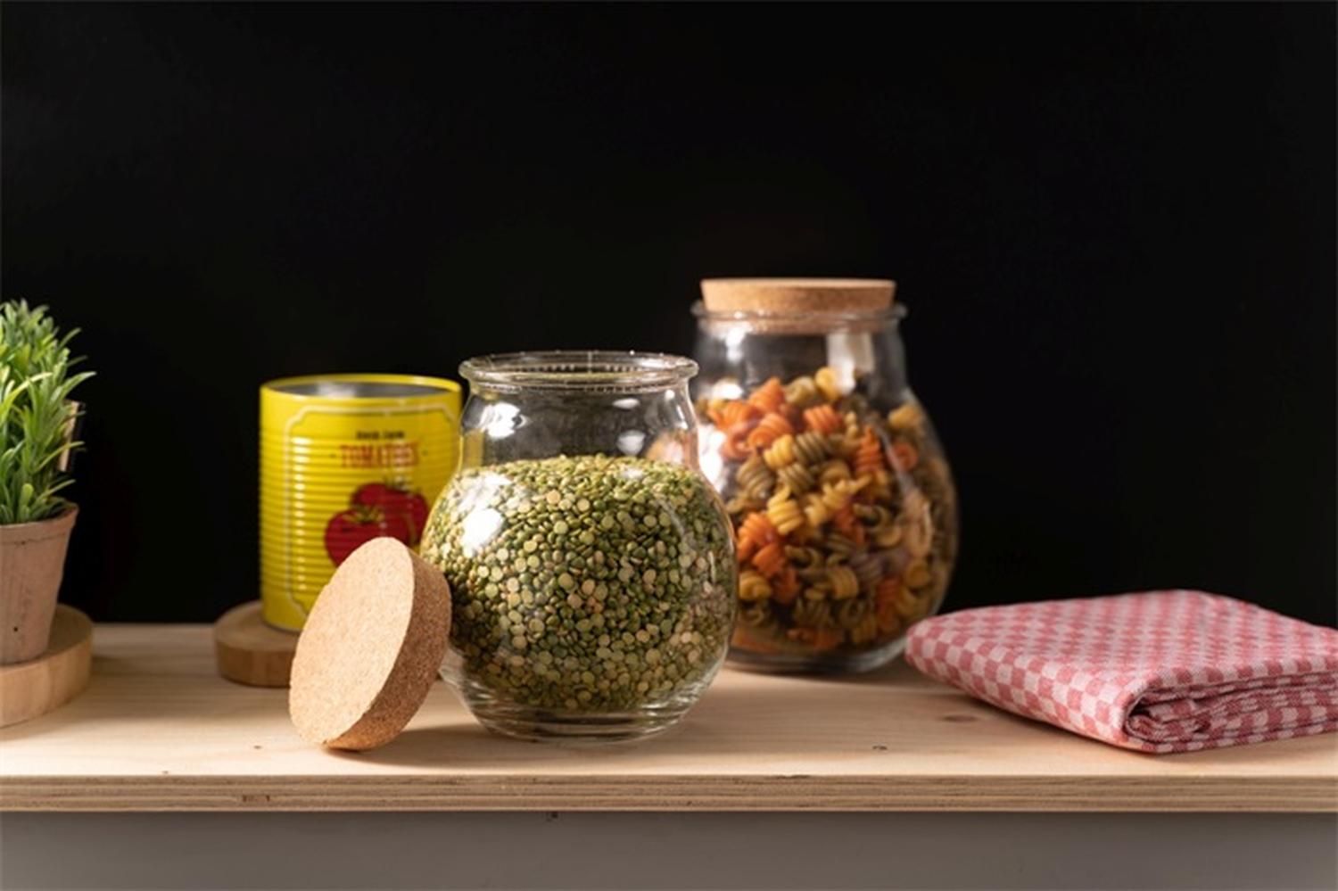 Bocal de stockage MAKSYM avec couvercle en liège, transparent, 20cm, Ø17cm