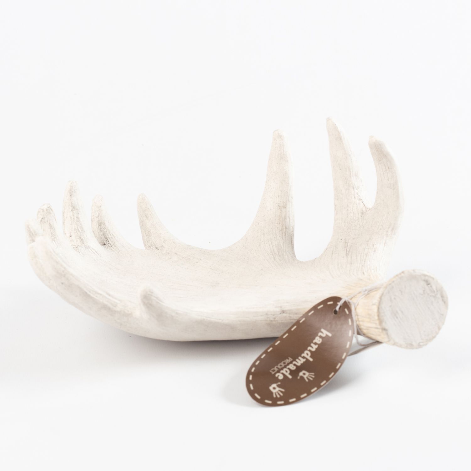 Bol décoratif en bois d'élan WIBE, plastique, fait à la main, blanc, 22x17x10cm