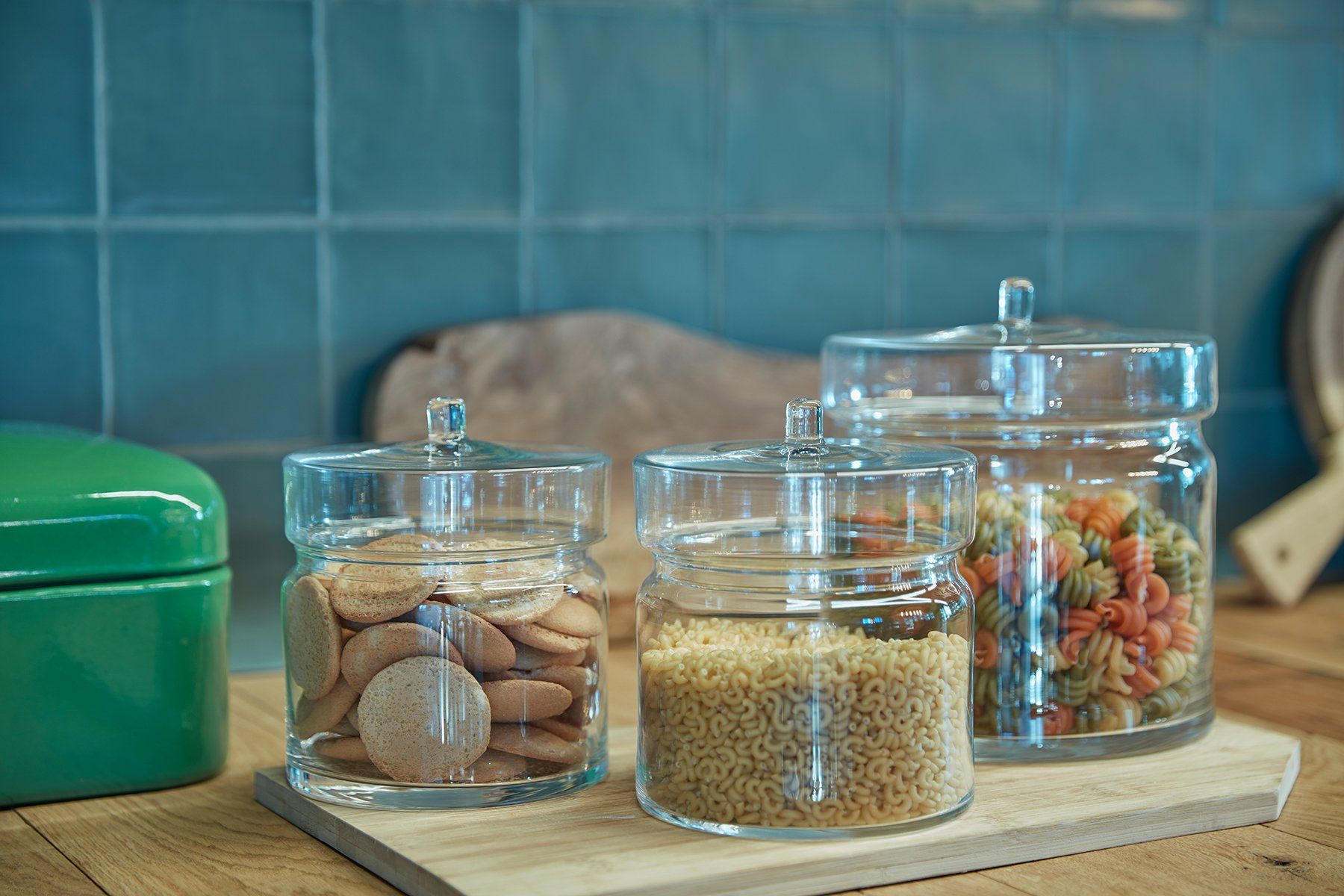 Le bocal de rangement / boîte de conservation MILLIE en transparent aux dimensions 21 cm ; Ø 19 cm par INNA Glas s'utilise non seulement comme récipient de rangement, mais également comme verre décoratif.
