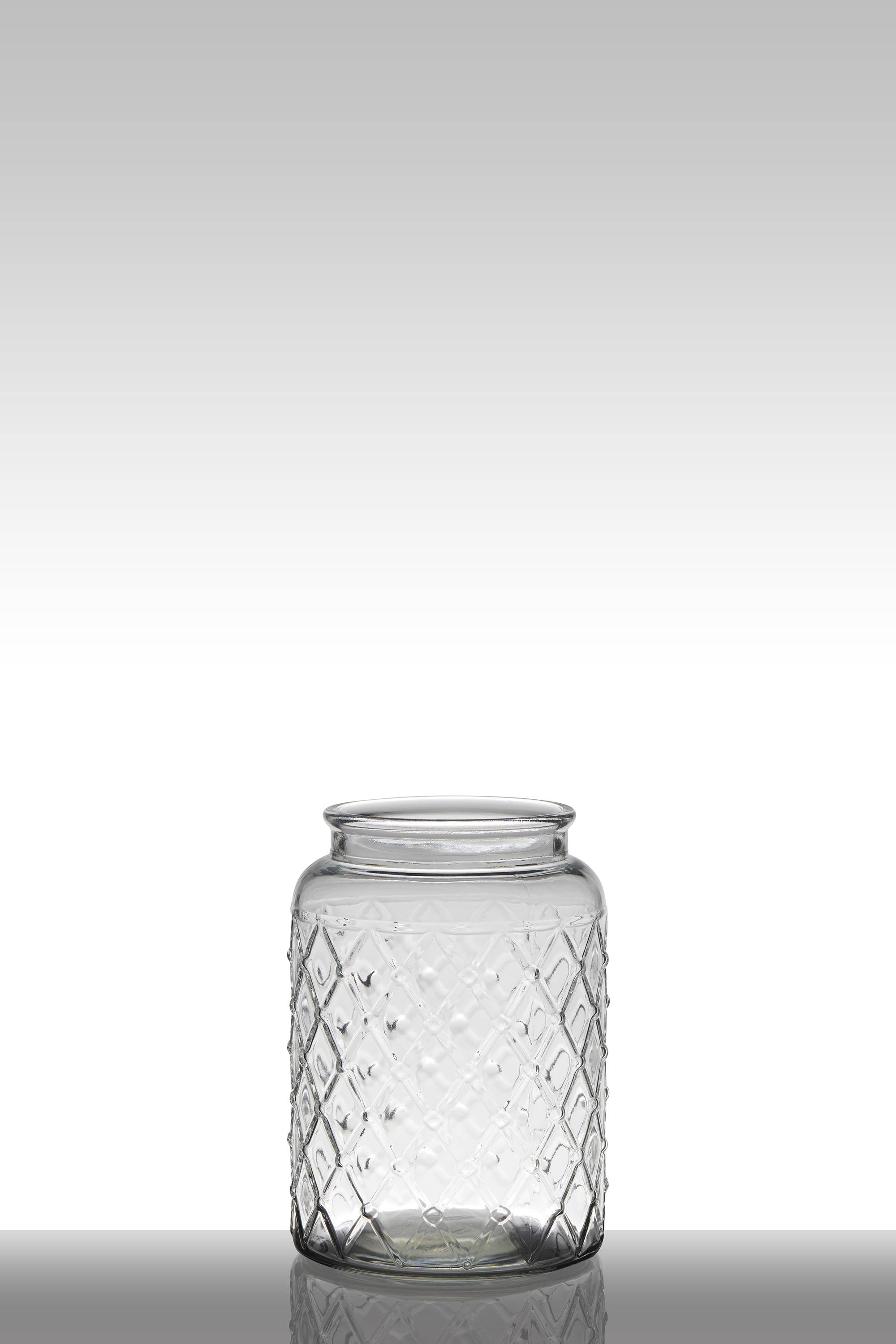 Bougeoir de table en verre ROSIE avec motif losange, cylindre/rond, transparent, 23cm, Ø16cm