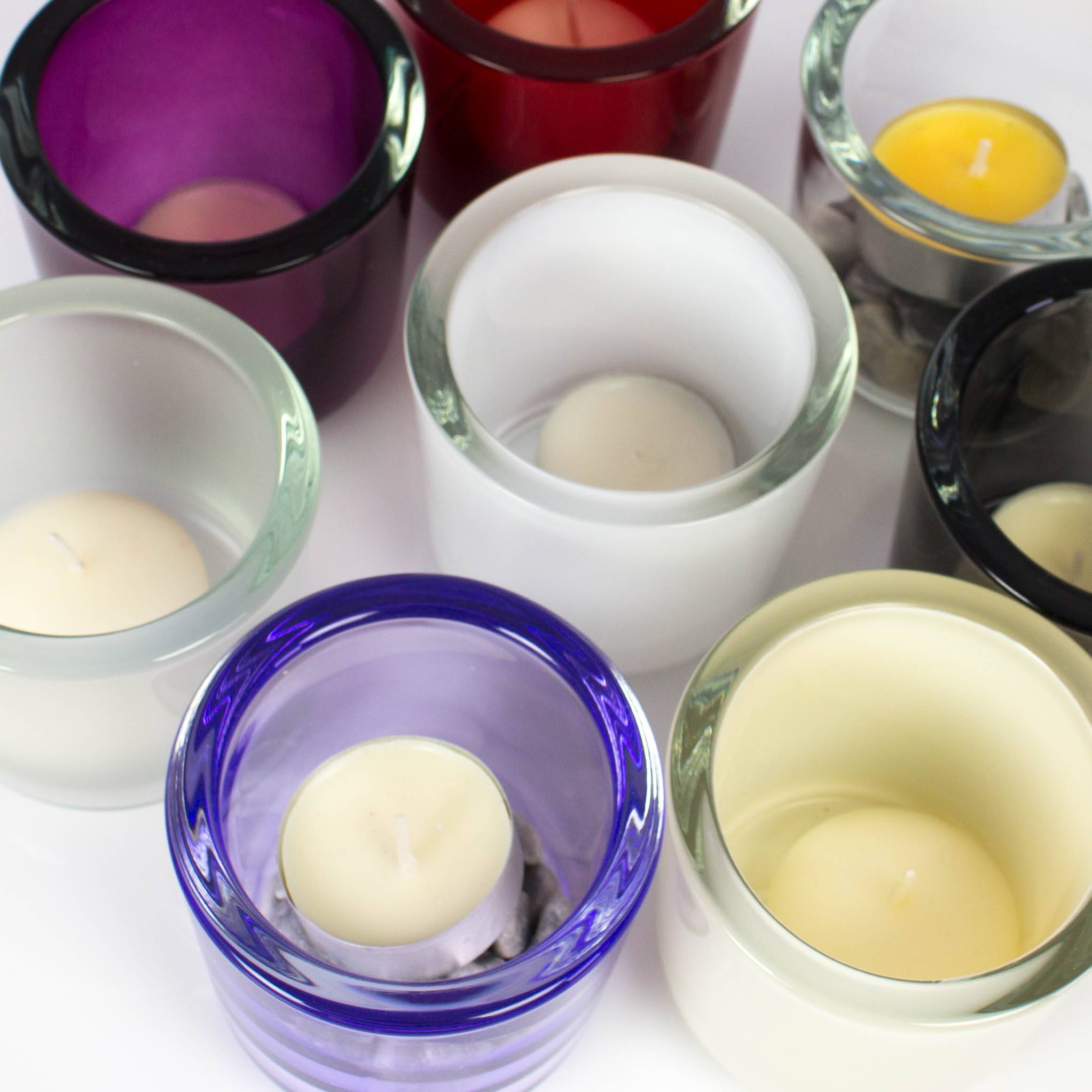 Petit bougeoir rond NICK en verre épais de la collection INNA Glas. Avec ses 8 cm de haut et 8 cm de diamètre, ce joli photophore est idéal pour une bougie chauffe-plat.