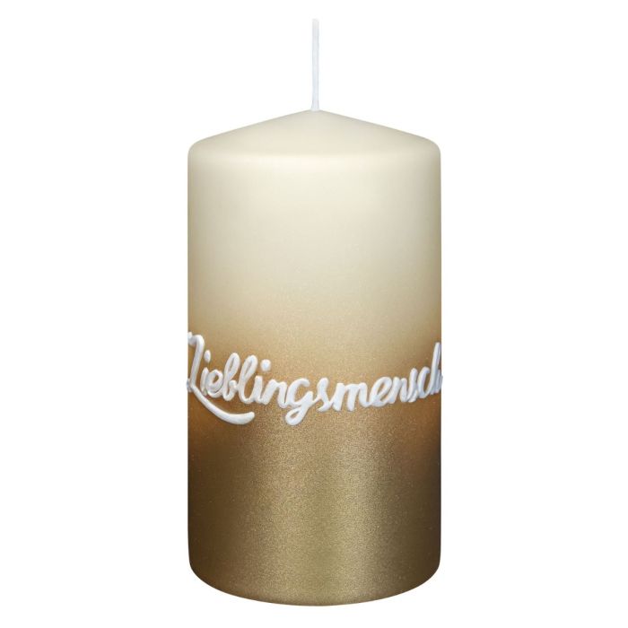 Bougie à message JARDENA, homme préféré en allemand, biscuit-or, 13cm, Ø7cm, 52h