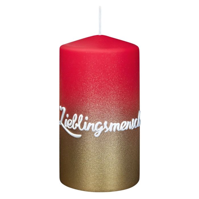 Bougie à message JARDENA, homme préféré en allemand, vieux rouge-or, 13cm, Ø7cm, 52h