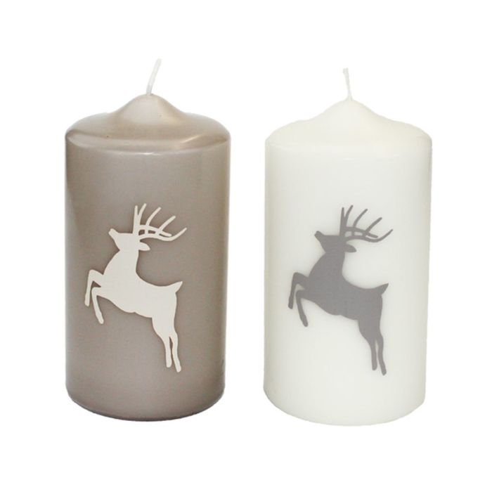Bougie avec motif / Bougie de Noël DALDI, motif cerf, lot de 2, beige, 15cm, Ø8cm, 69h - Made in Germany