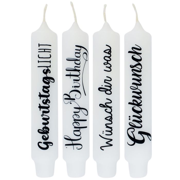 - En blanc avec écriture noire, en tout 4 bougies avec différents slogans en allemand