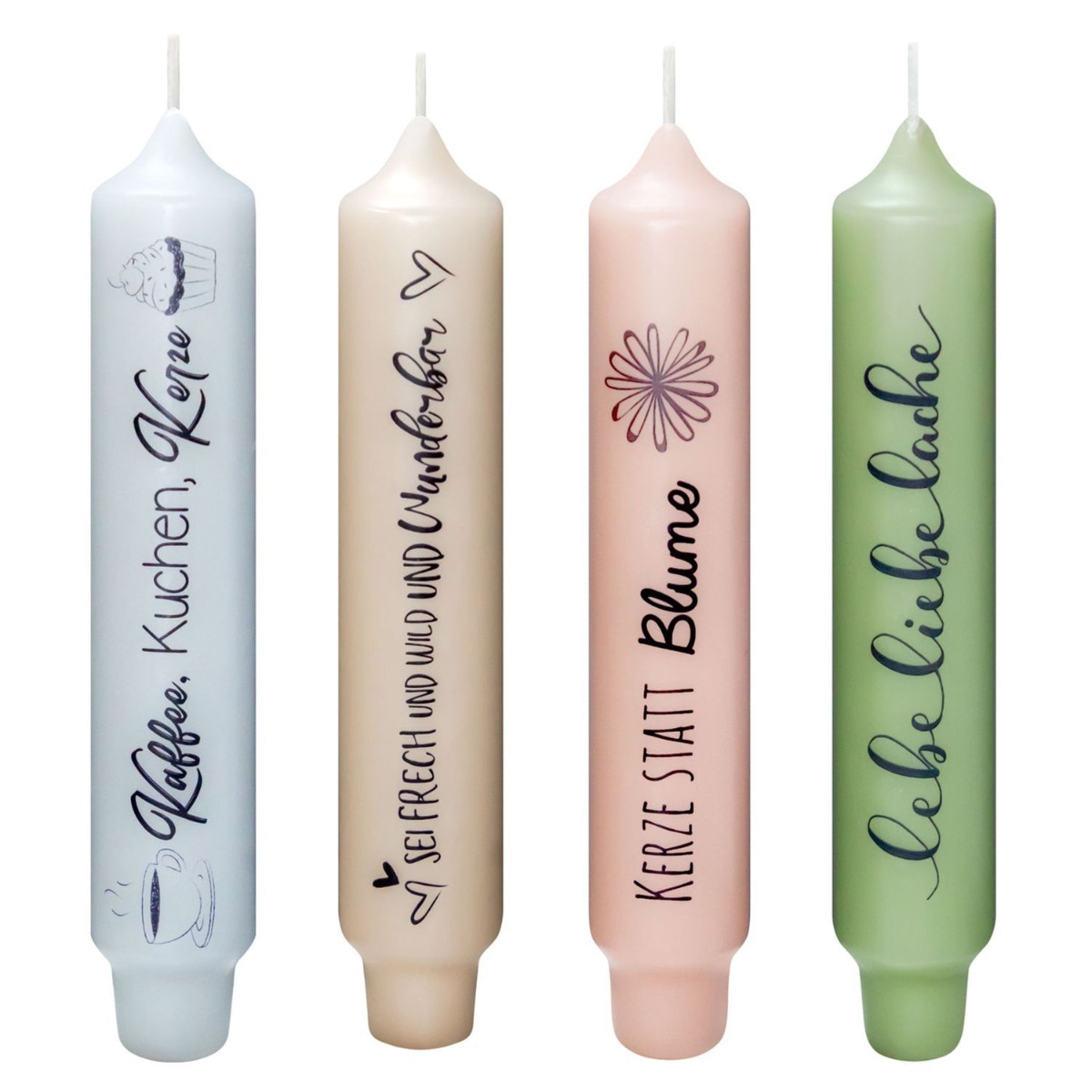 Bougie chandelle avec dicton KELANI, cadeau en allemand, 4 bougies, 4 dictons, multicolore, 16,5cm, Ø2,8cm, 6h