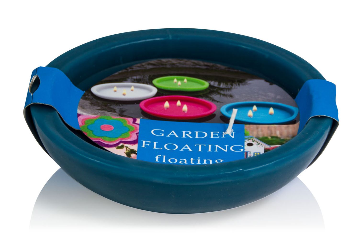 Bougie flottante d'extérieur NEREA, 3 mèches, bleu azur, 4,5cm, Ø15,8cm, 5,5h