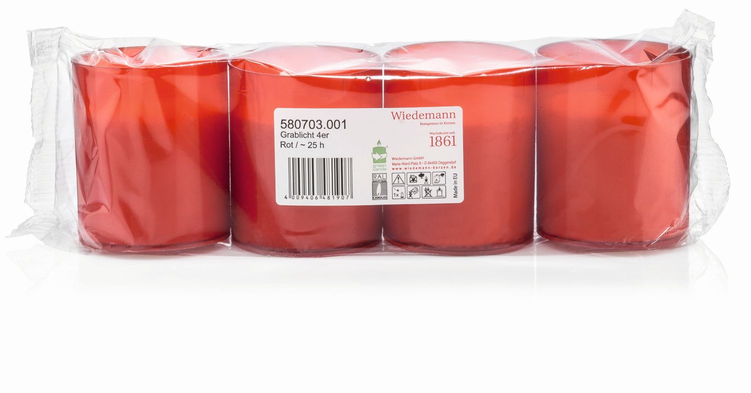 Bougie funéraire JESENIA, 4 pièces, rouge-blanc, 5,9cm, Ø5cm, 25h