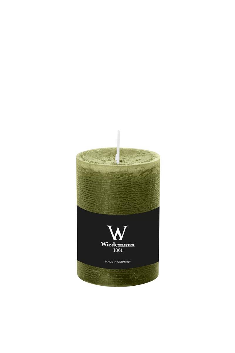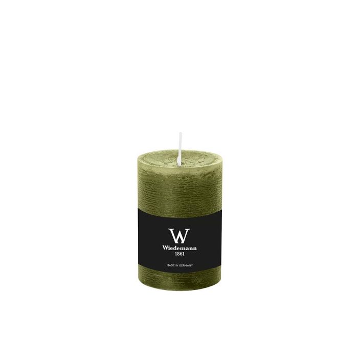 Bougie pilier / bougie en cire AURORA, vert olive, 10cm, Ø6,8cm, 42h - Made in Germany