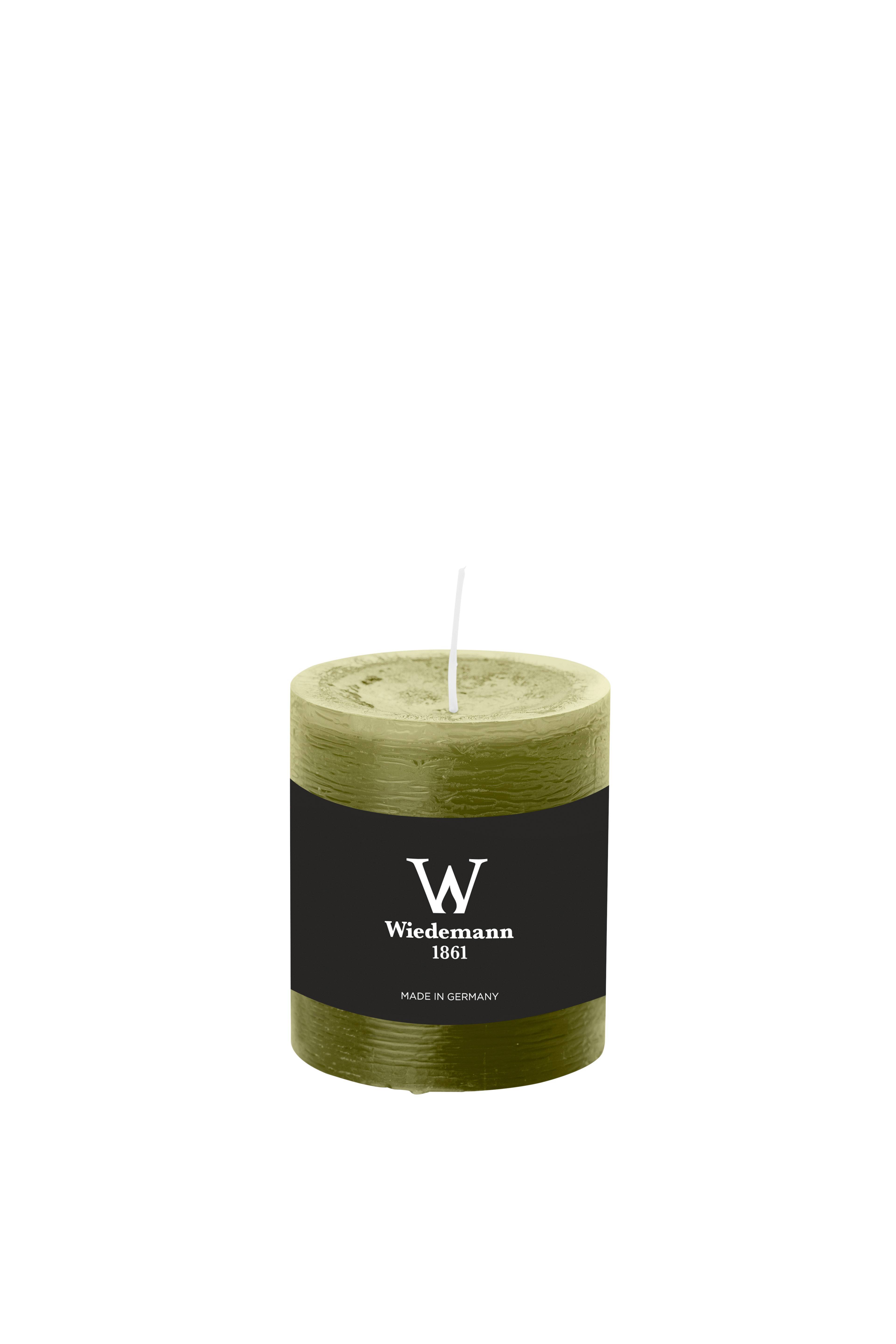 Bougie pilier / bougie en cire AURORA, vert olive, 8cm, Ø6,8cm, 34h - Made in Germany