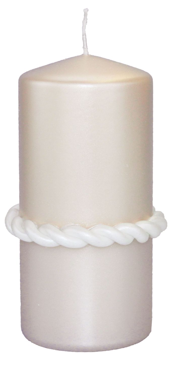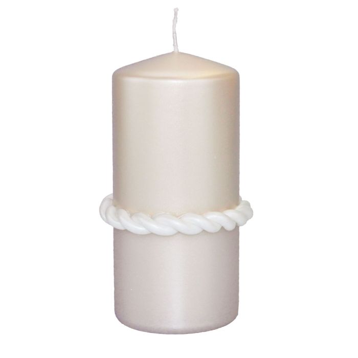 Bougie pilier JULIETTA, anneau de soie en relief, crème, 15cm, Ø7cm, 63h