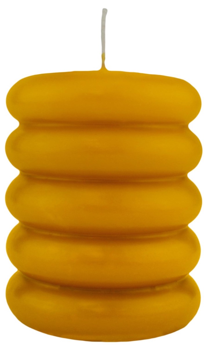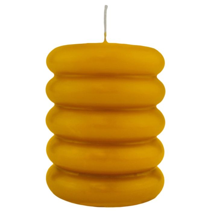 Bougie pilier MONISHA avec des rainures horizontales, ocre jaune, 11cm, Ø9cm, 69h - Made in Germany