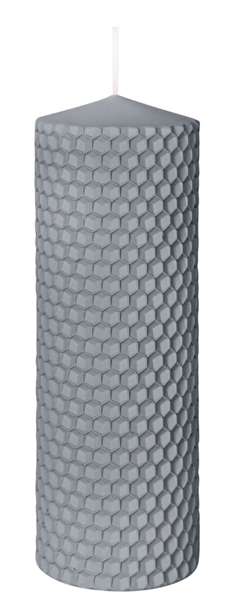 Bougie pilier OSTARA, aspect nid d'abeille, gris, 15cm, Ø5cm, 37h - Made in Germany