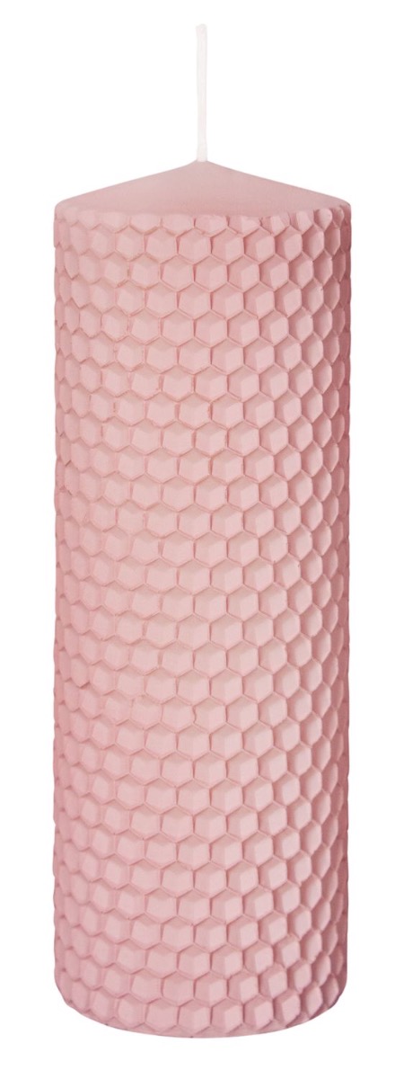 Bougie pilier OSTARA, aspect nid d'abeille, vieux rose, 15cm, Ø5cm, 37h - Made in Germany
