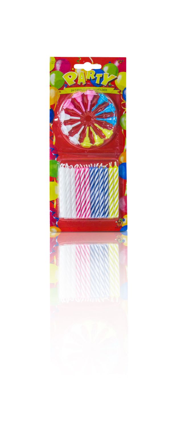 - Comprend 24 bougies et 12 supports