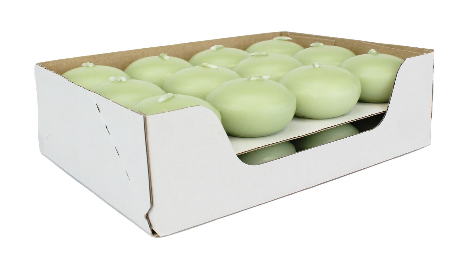 Bougies flottantes ORNELLA, 24 pièces, vert pastel, 2,8cm, Ø4,5cm, 4h