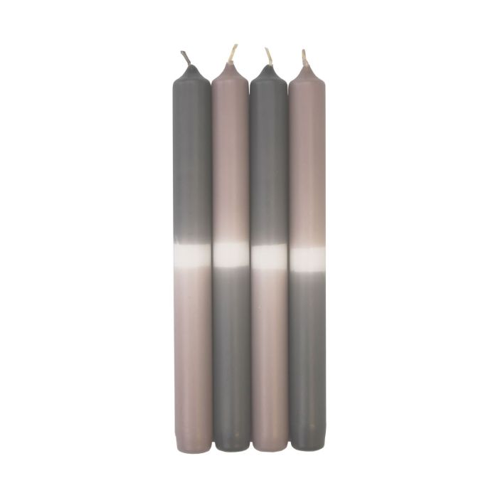 Bougies longues Dip Dye LISSITA, 4 pièces, gris-argenté, 25cm, Ø2,3cm, 11h