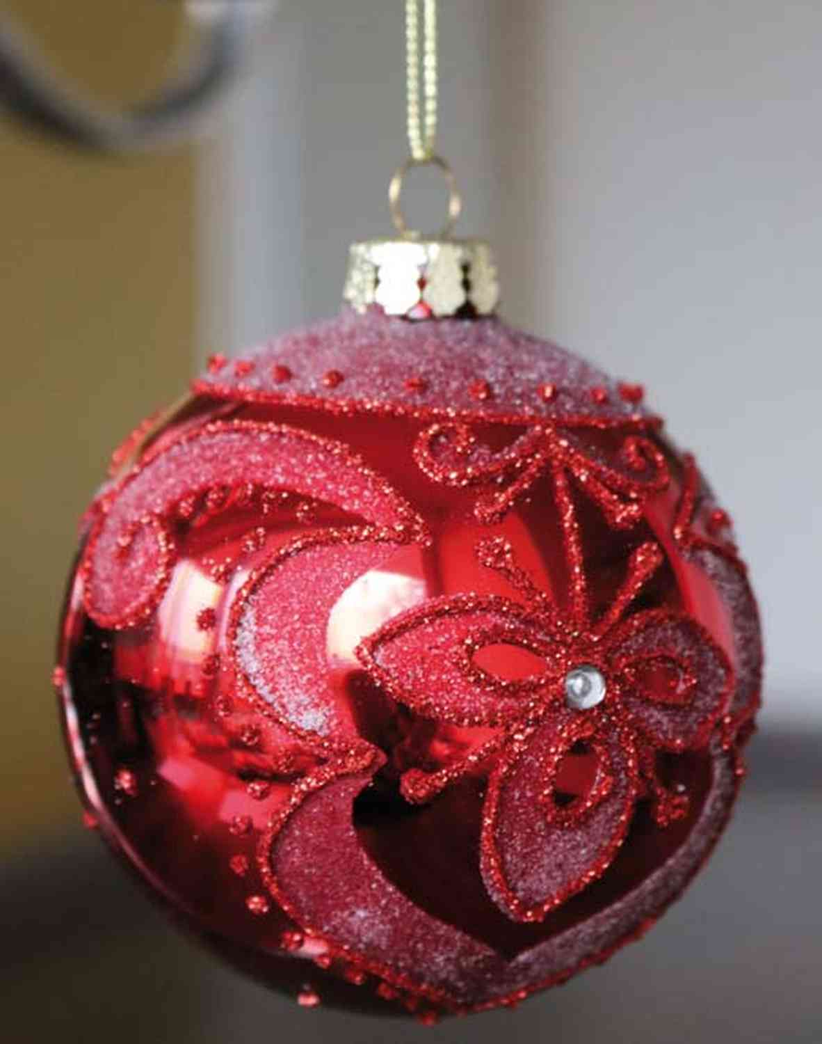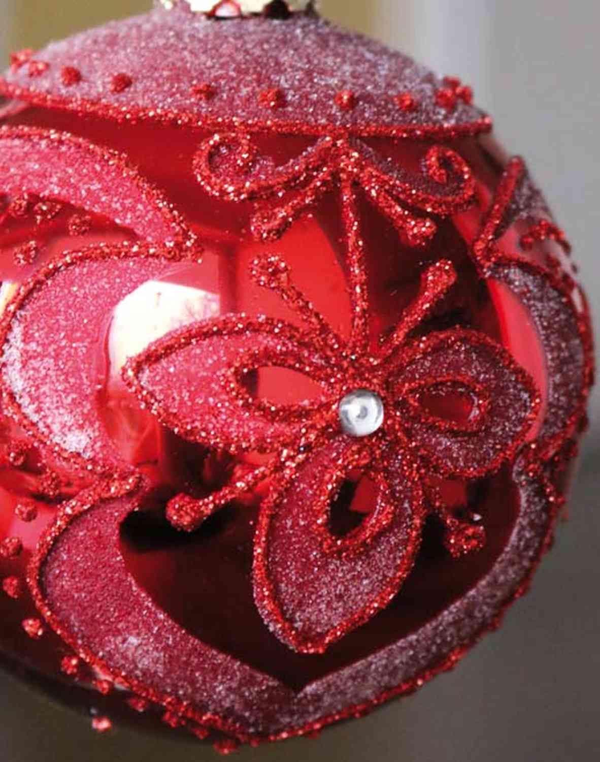 La boule de Noël rouge CAROLINE est ornée d'un beau décor de guirlande de fleurs. Cette suspension de Noël décorera joliment votre arbre de Noël avec un diamètre total d'env. 8 cm.