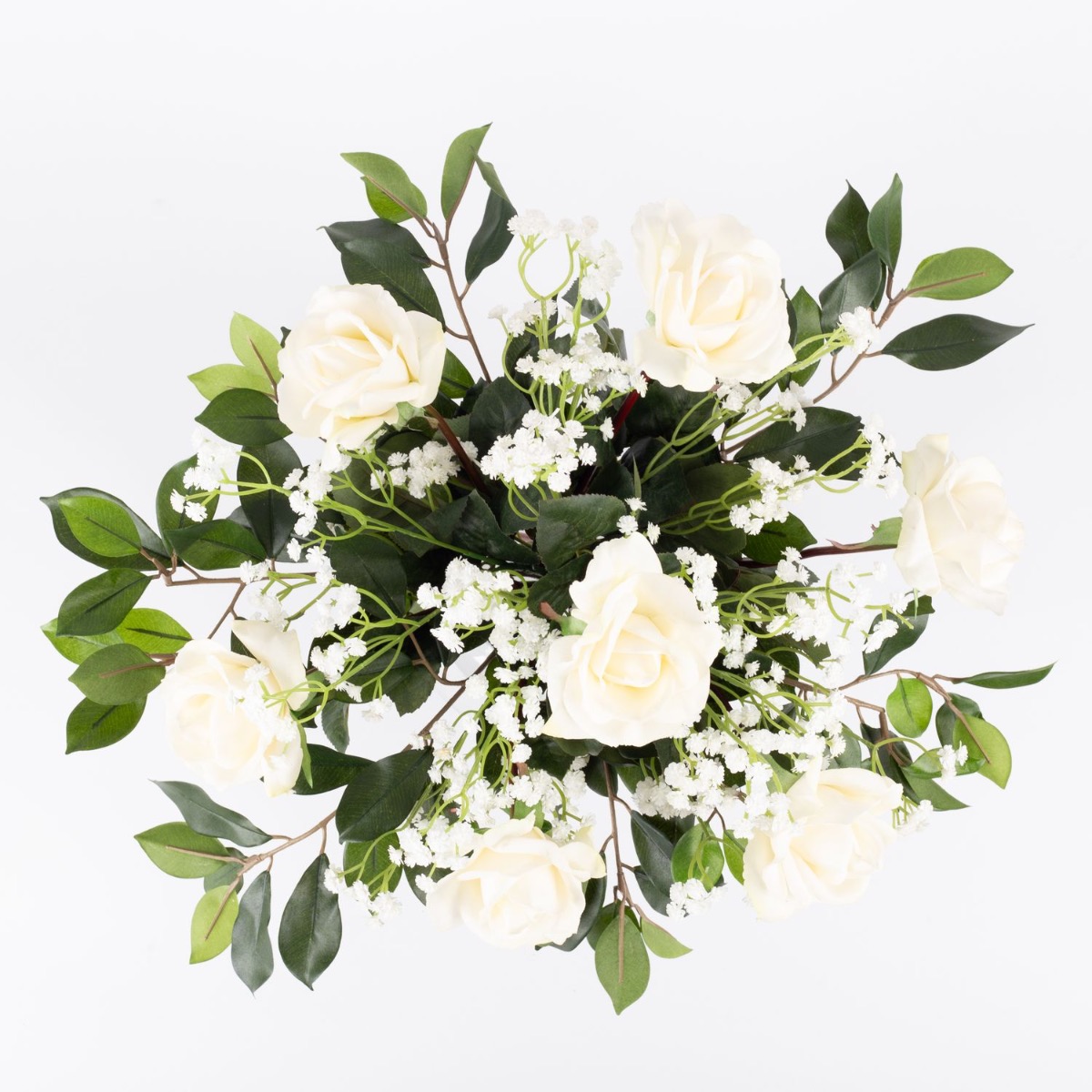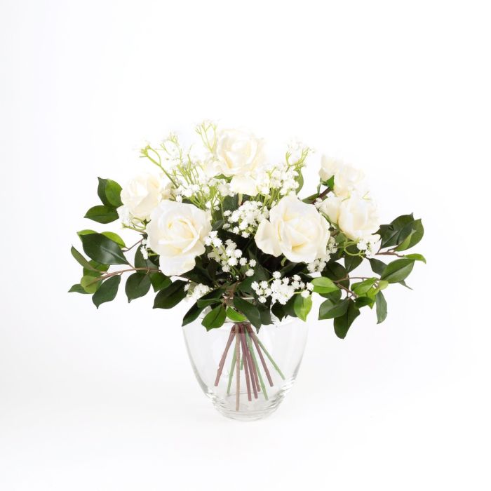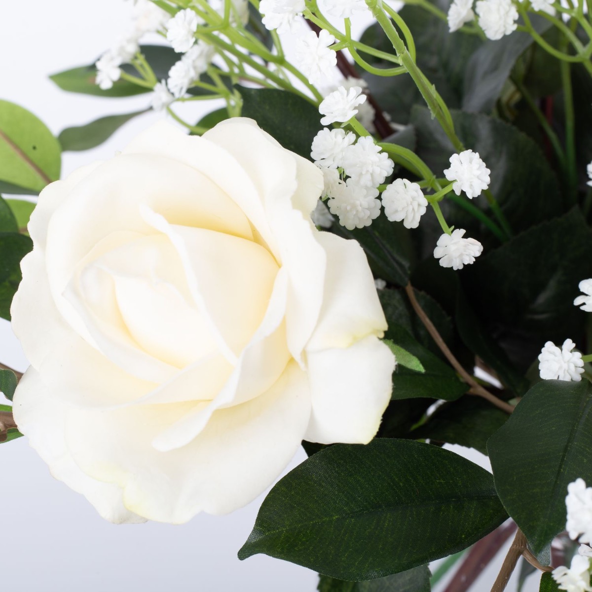 Bouquet artificiel AMELIE, roses et gypsophile, blanc, 45cm, Ø40cm