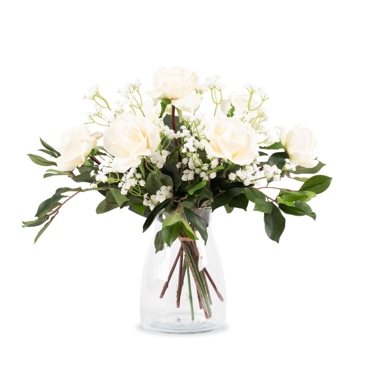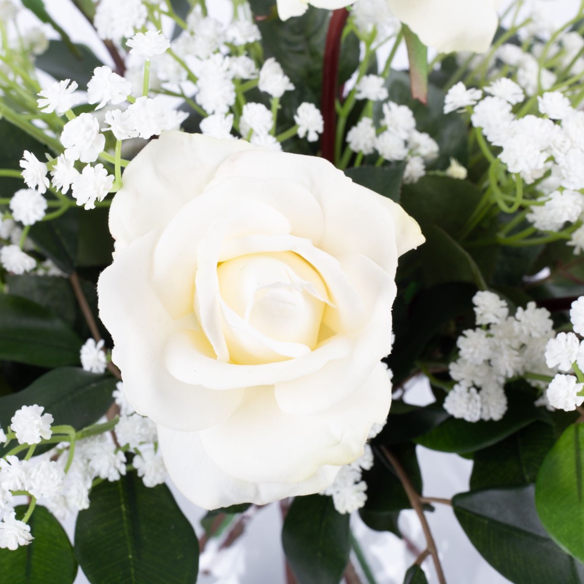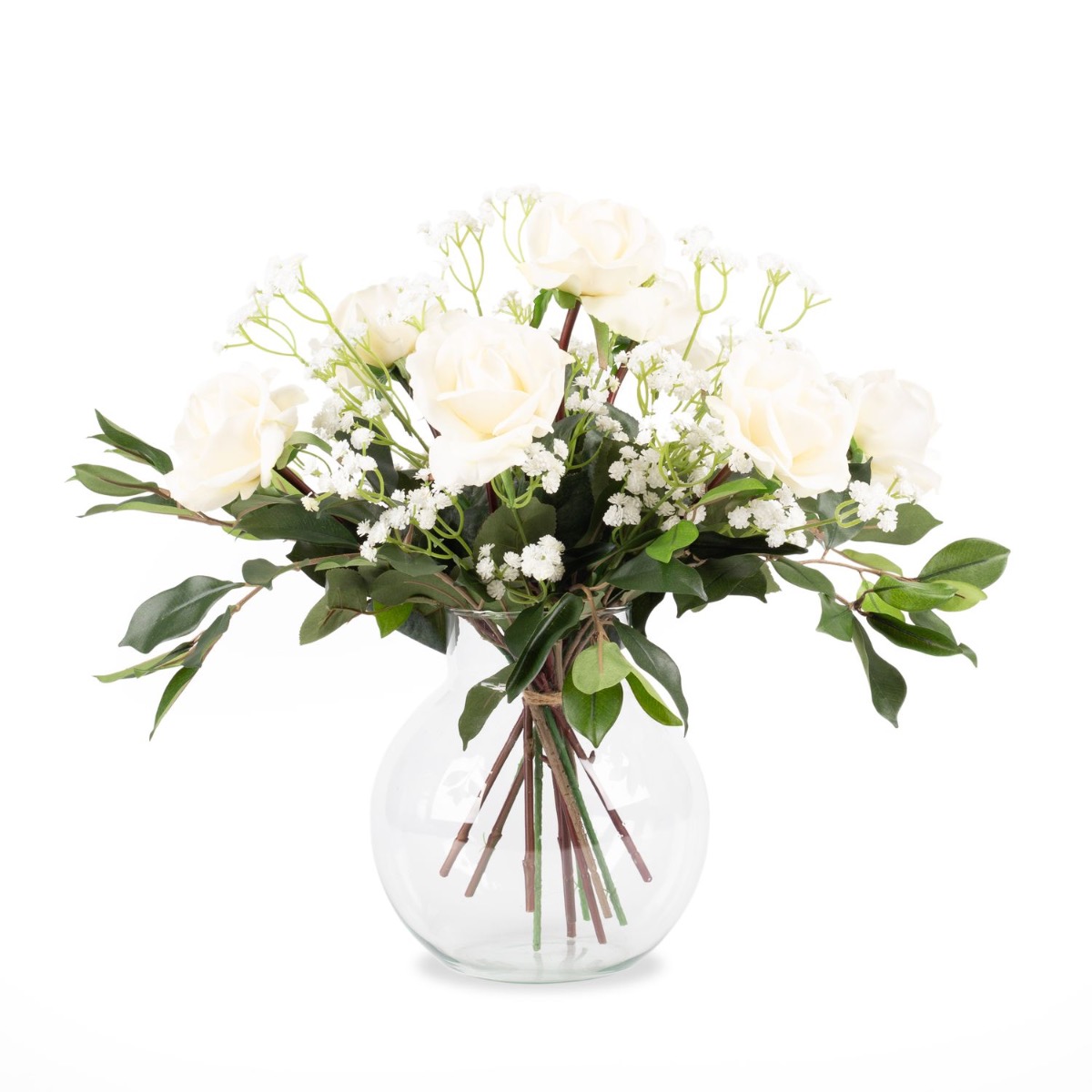 Bouquet artificiel AMELIE, roses et gypsophile, blanc, 45cm, Ø40cm