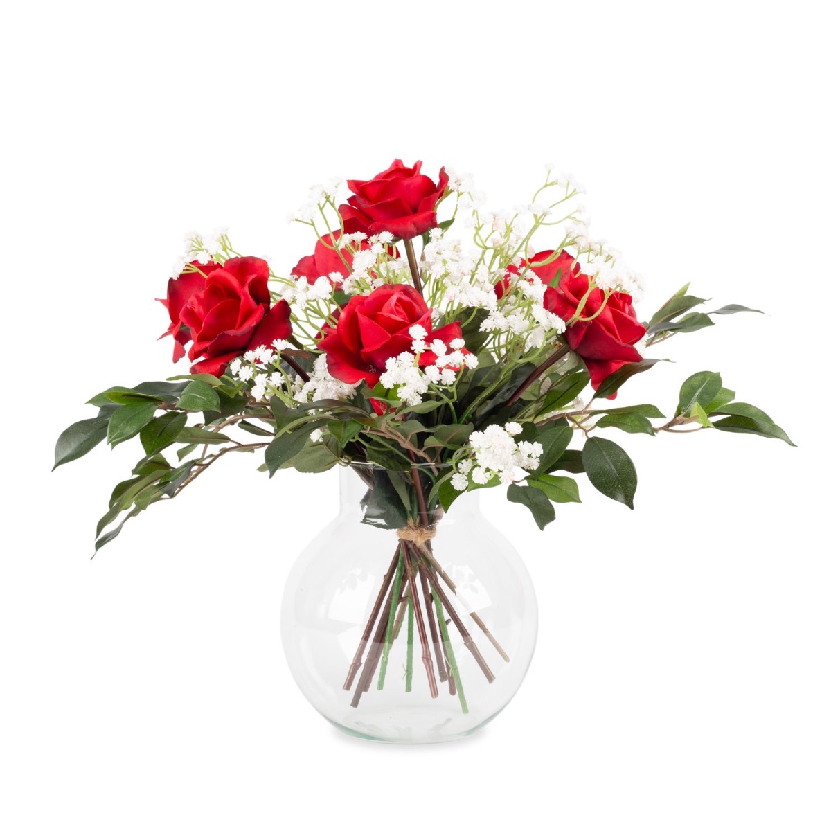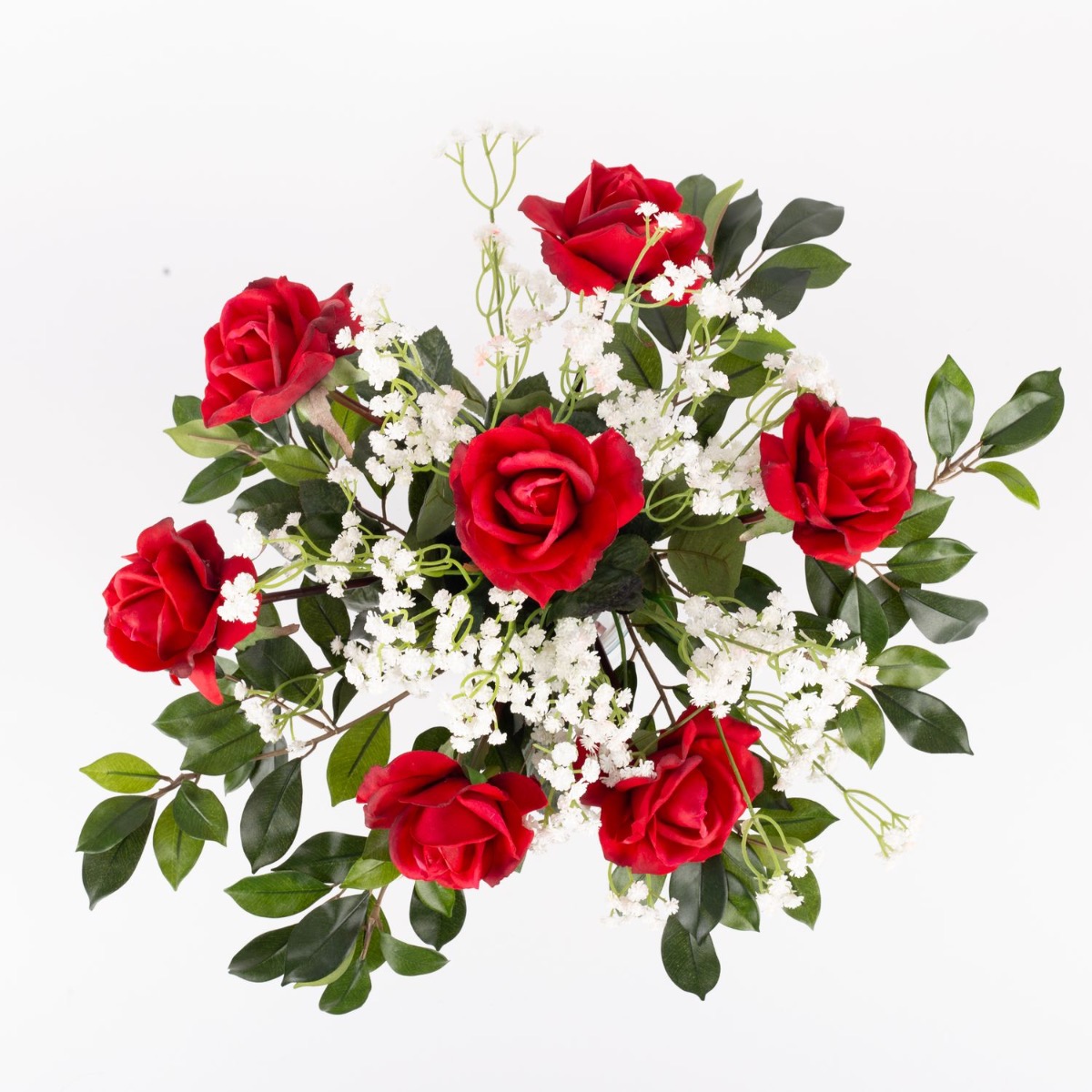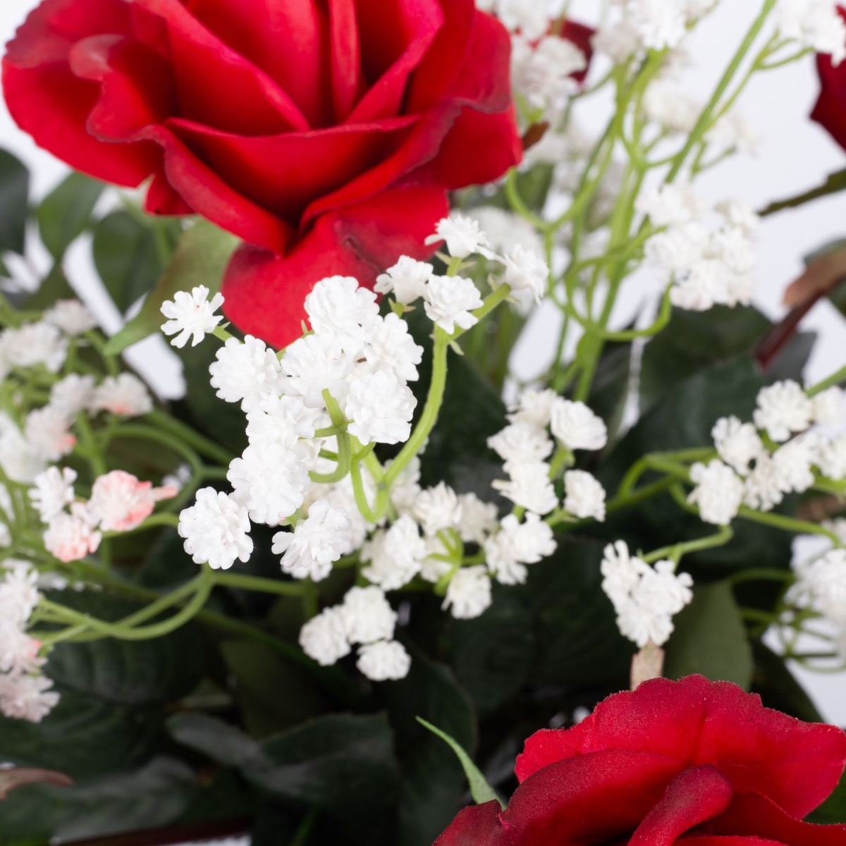 Bouquet artificiel AMELIE, roses et gypsophile, rouge, 45cm, Ø40cm