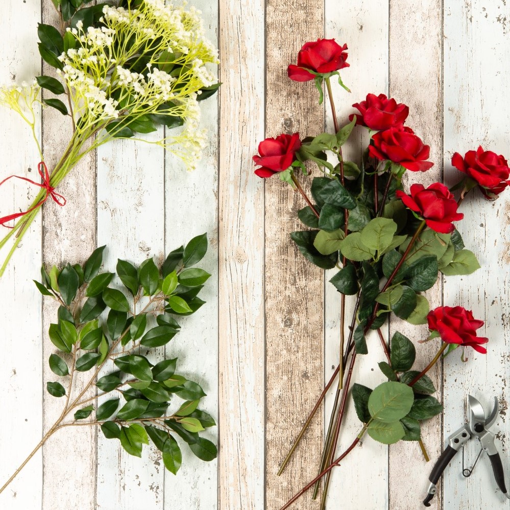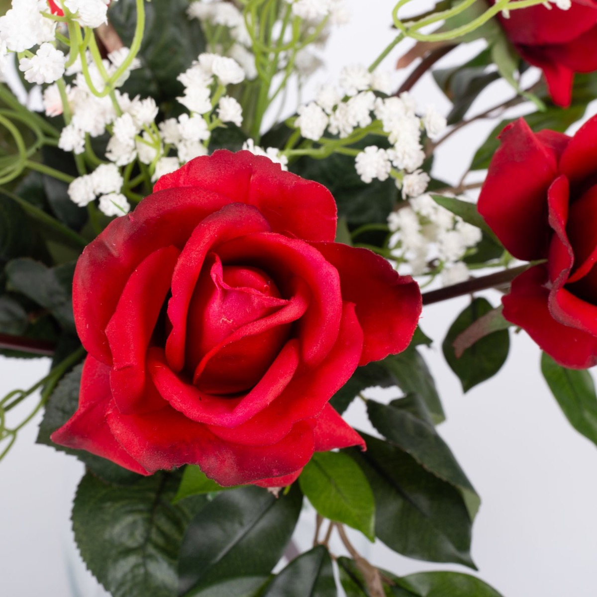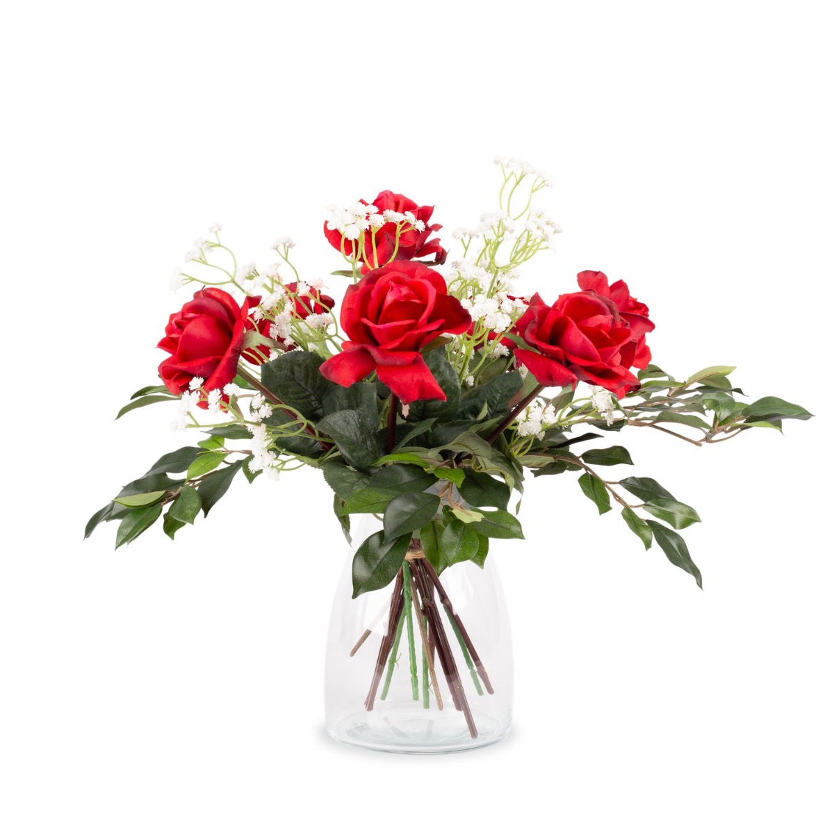 Bouquet artificiel AMELIE, roses et gypsophile, rouge, 45cm, Ø40cm