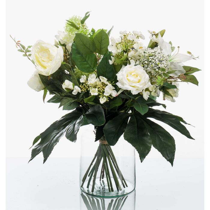 Bouquet artificiel FEME, blanc-vert, 60cm, Ø40cm