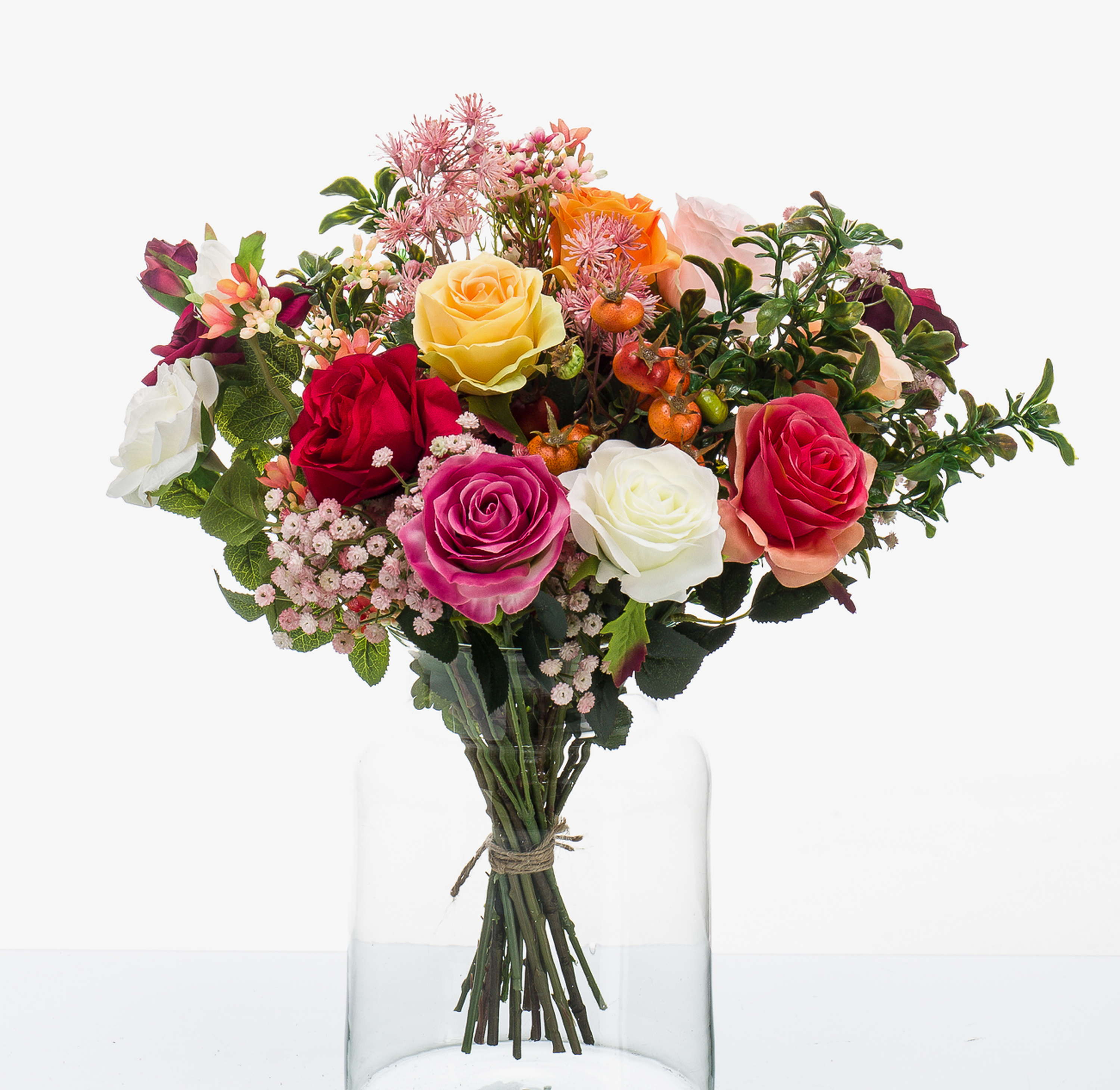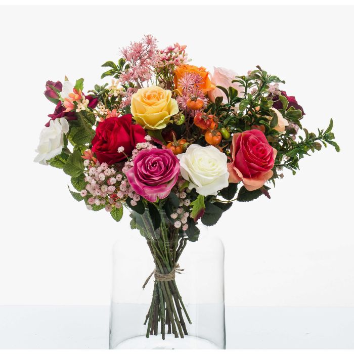 Bouquet artificiel FEME, orange-rose, 45cm, Ø40cm