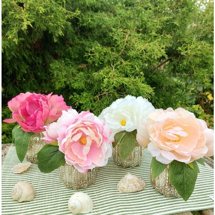 Bouquet de fleurs artificielles Pivoine VEIKO dans un vase en verre, crème-abricot, 15cm