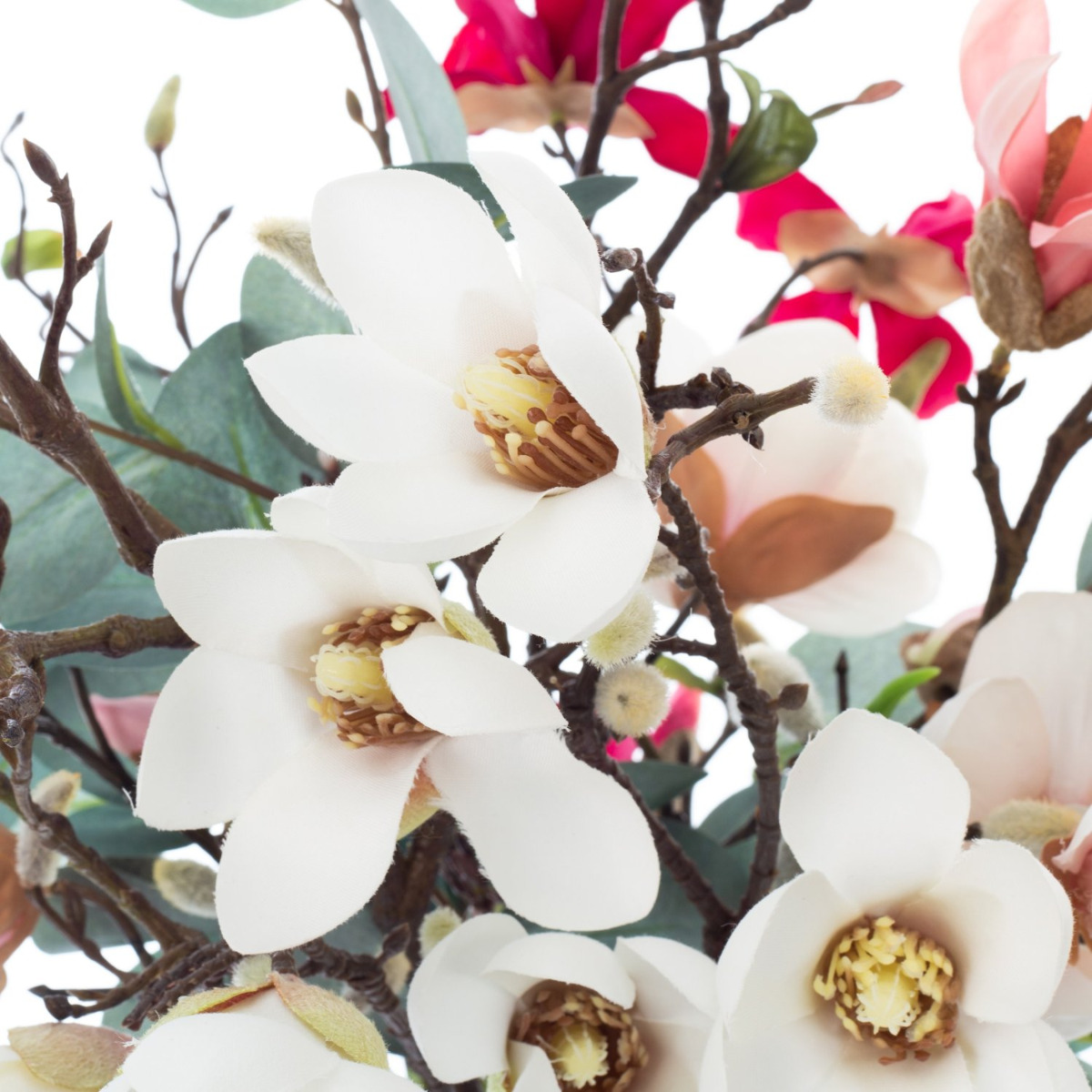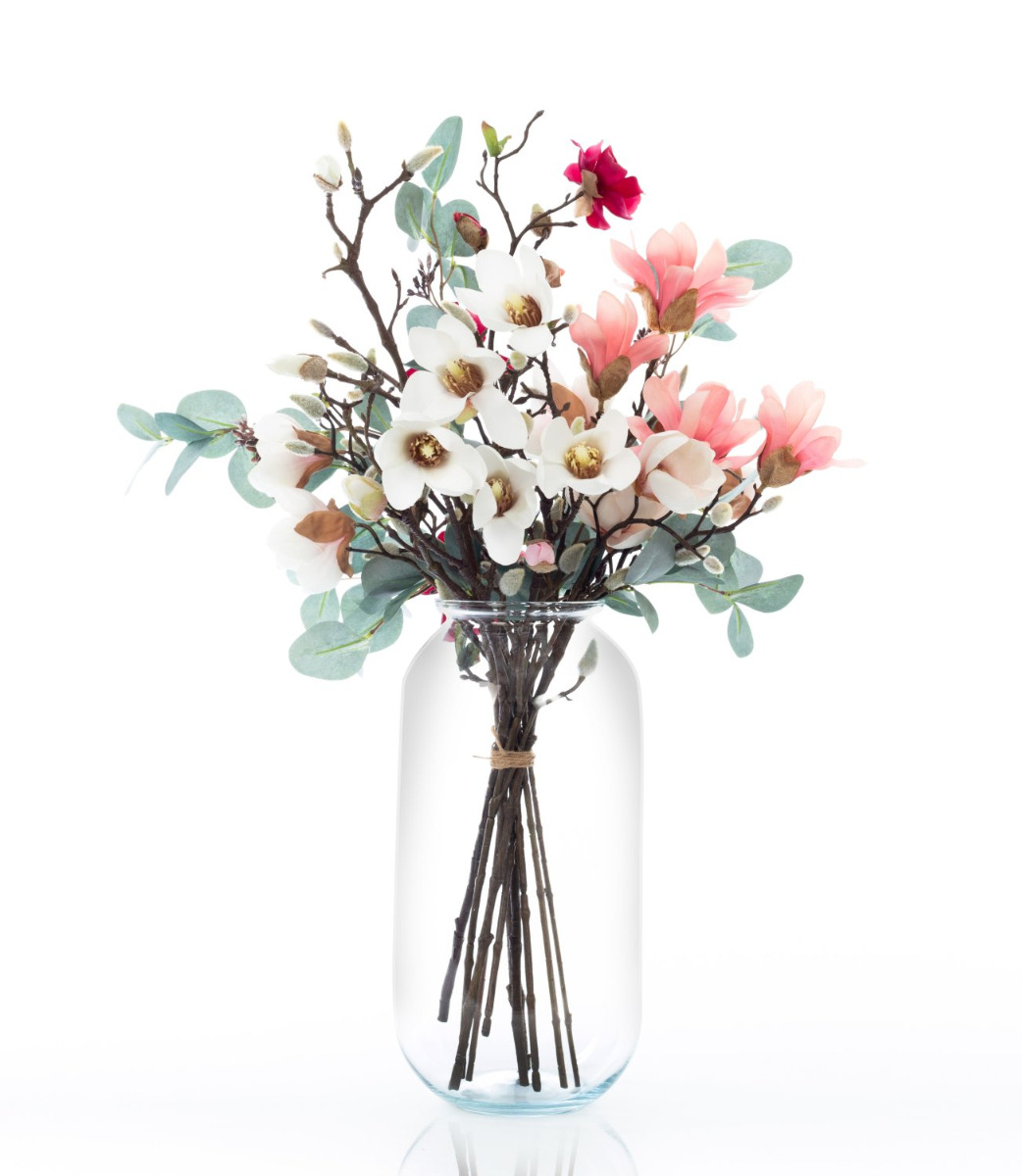 Bouquet de magnolias décoratif MERISA, blanc-rose, 70cm, Ø40cm