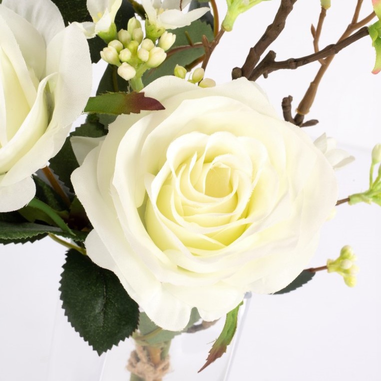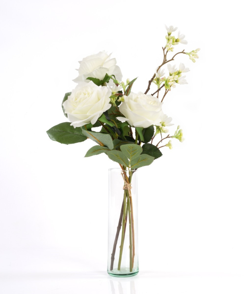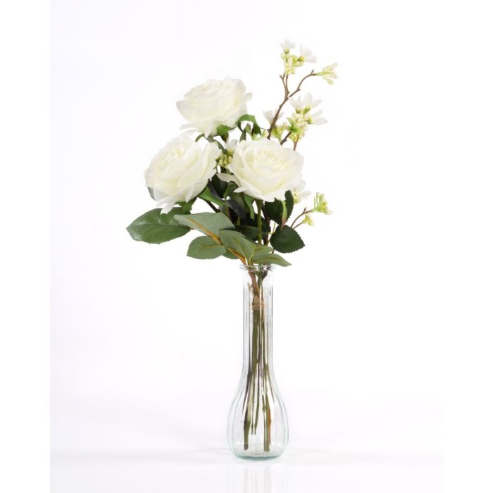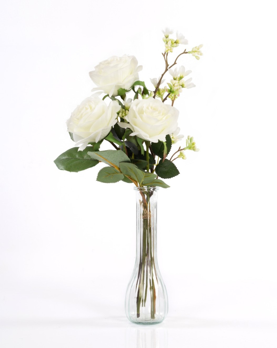 Bouquet de roses artificiel SIMONY, crème, 45cm, Ø20cm