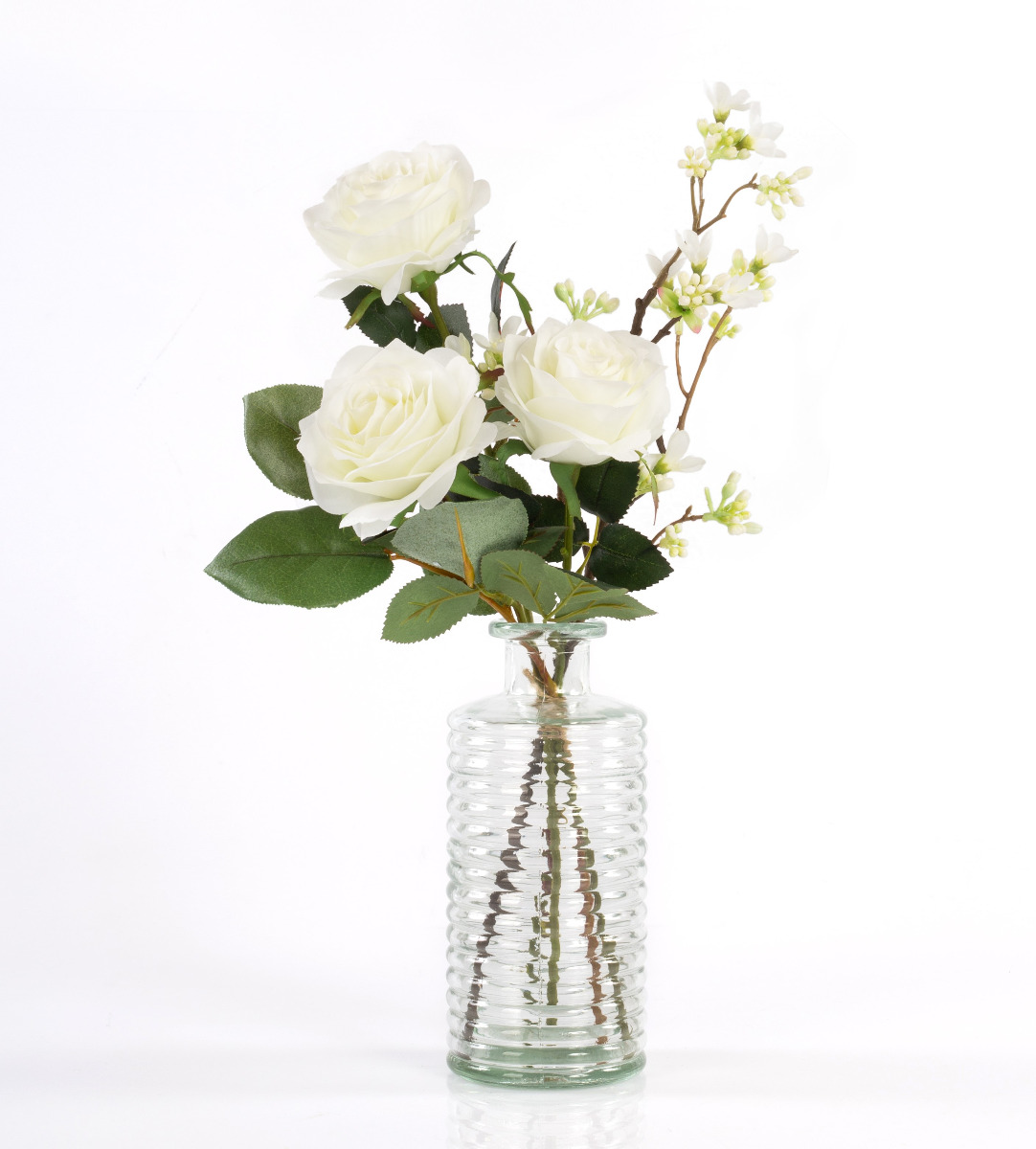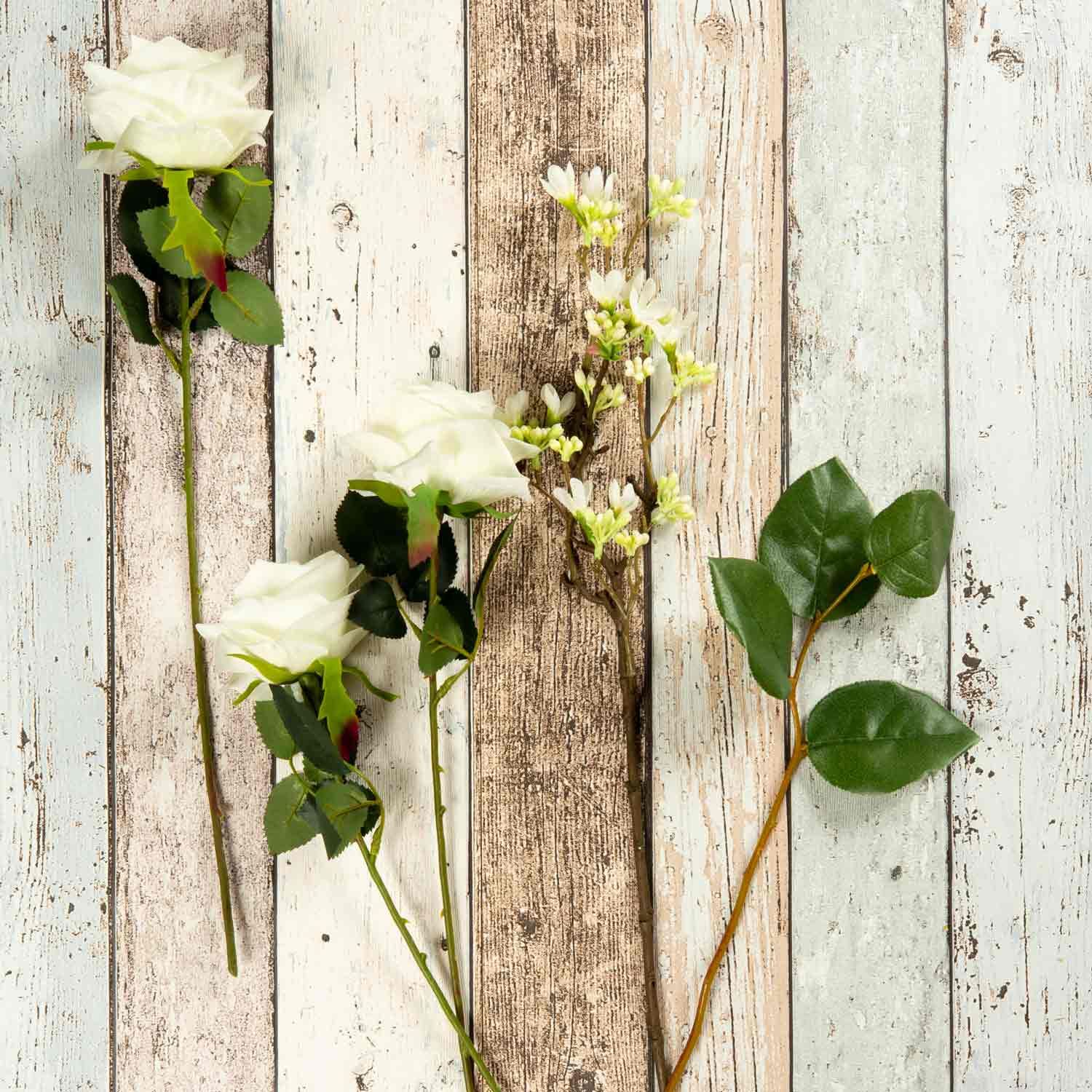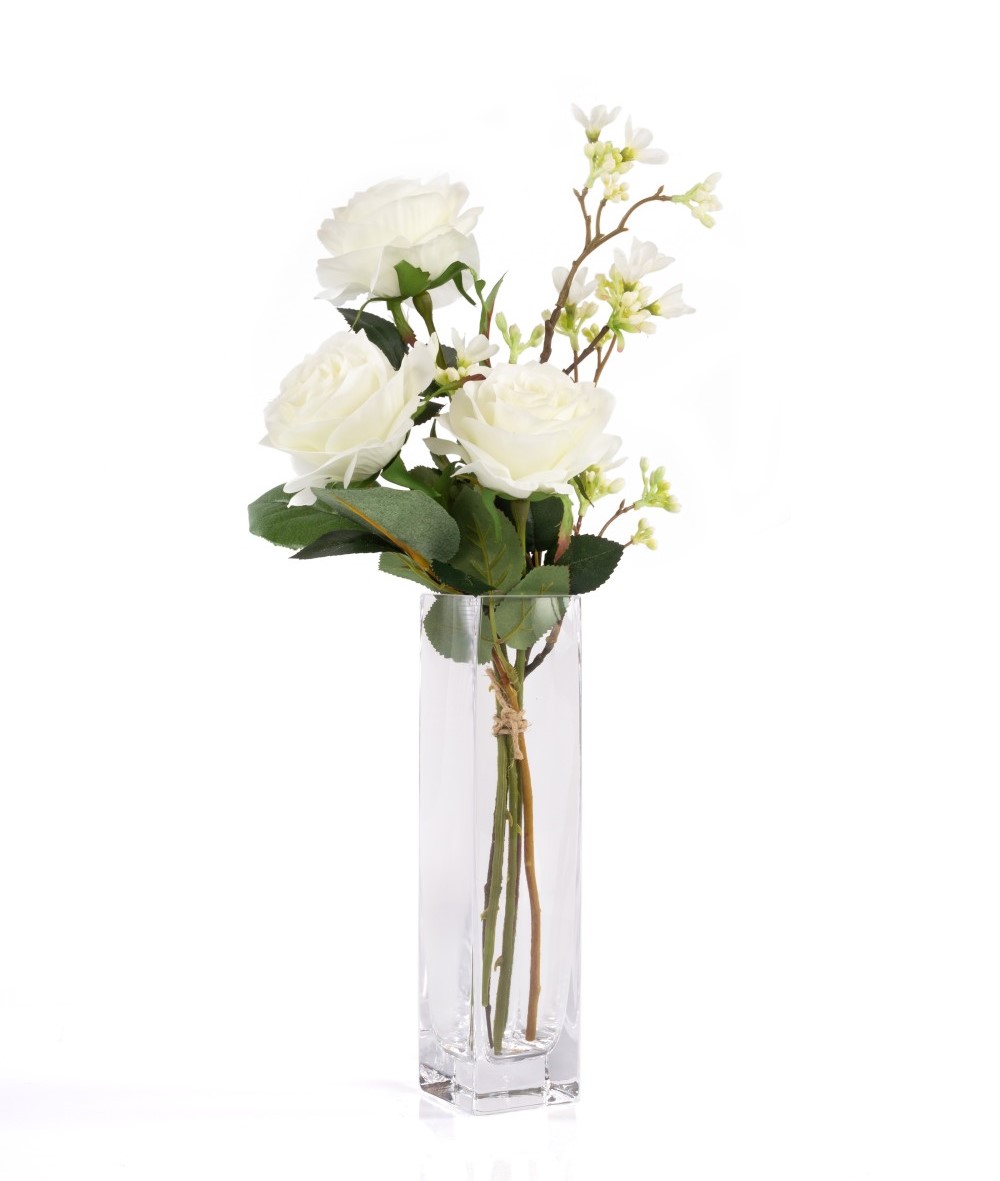 Bouquet de roses artificiel SIMONY, crème, 45cm, Ø20cm