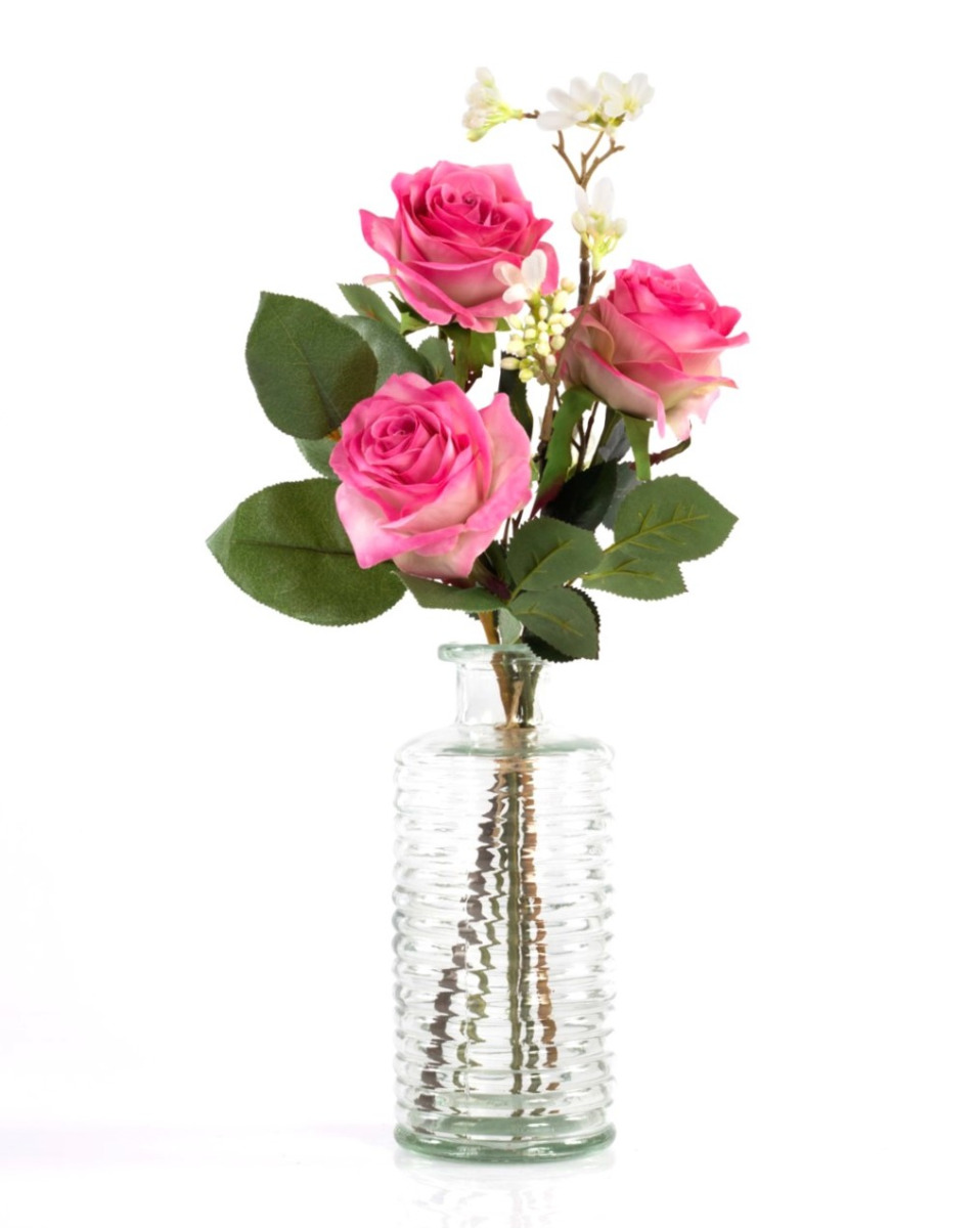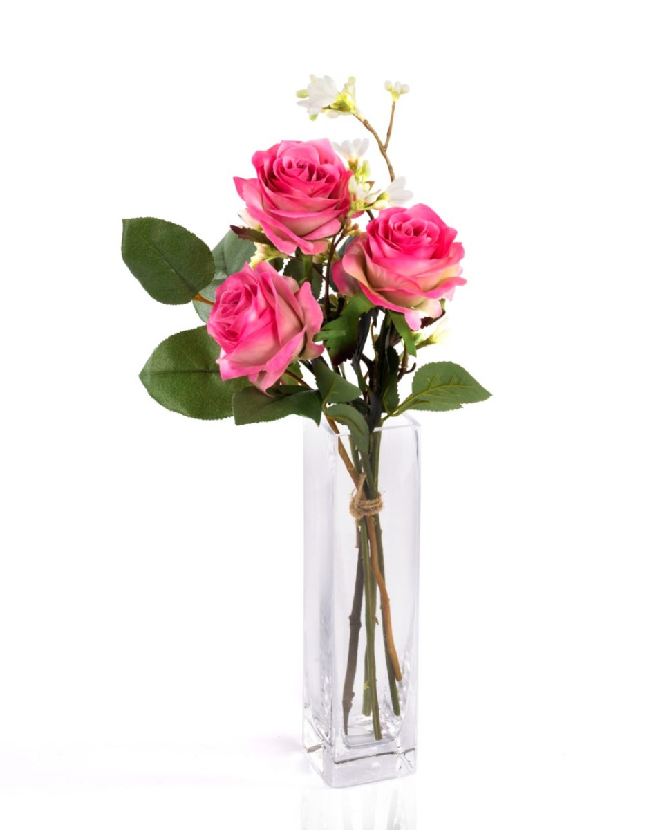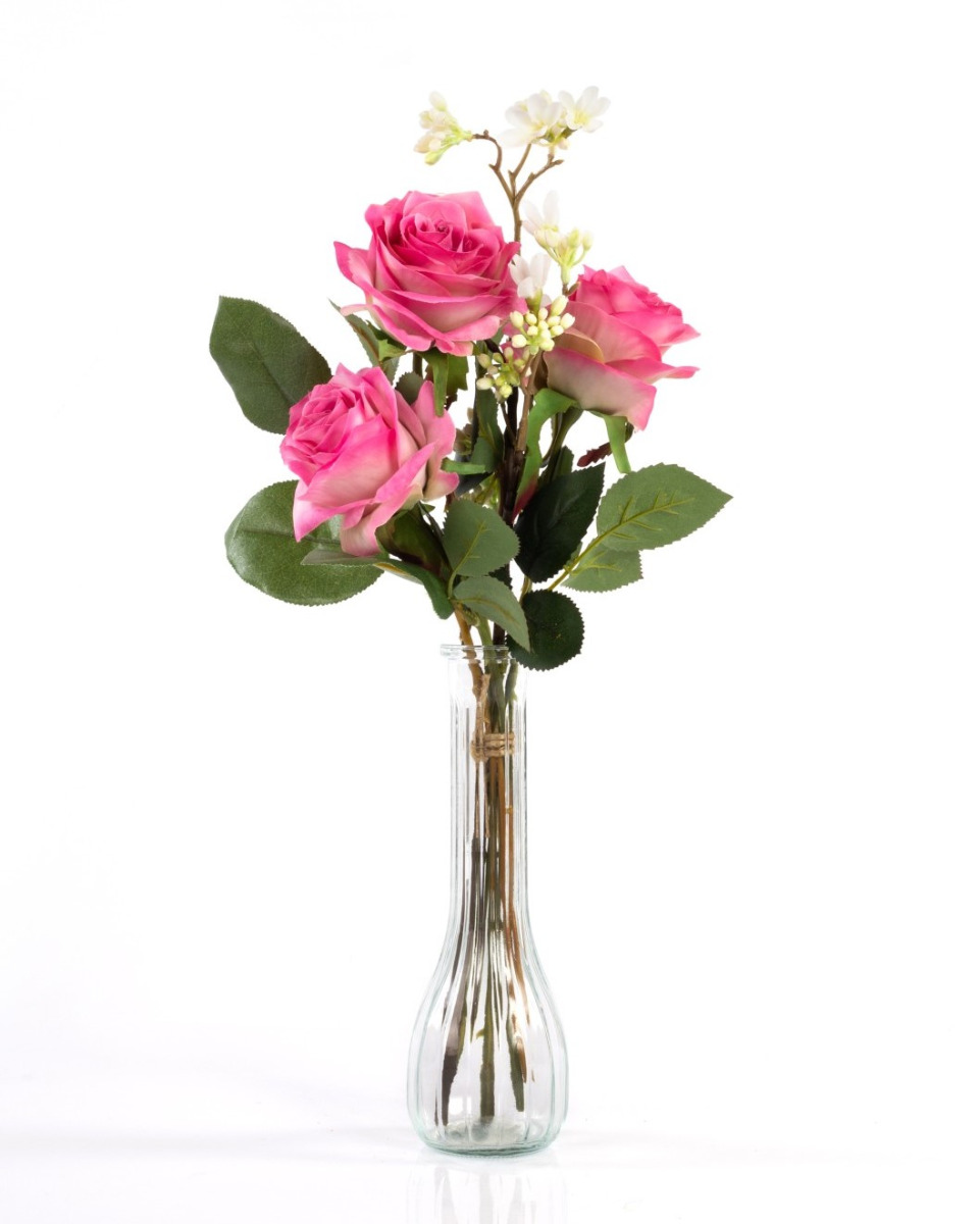 Bouquet de roses artificiel SIMONY, fuchsia, 45cm, Ø20cm