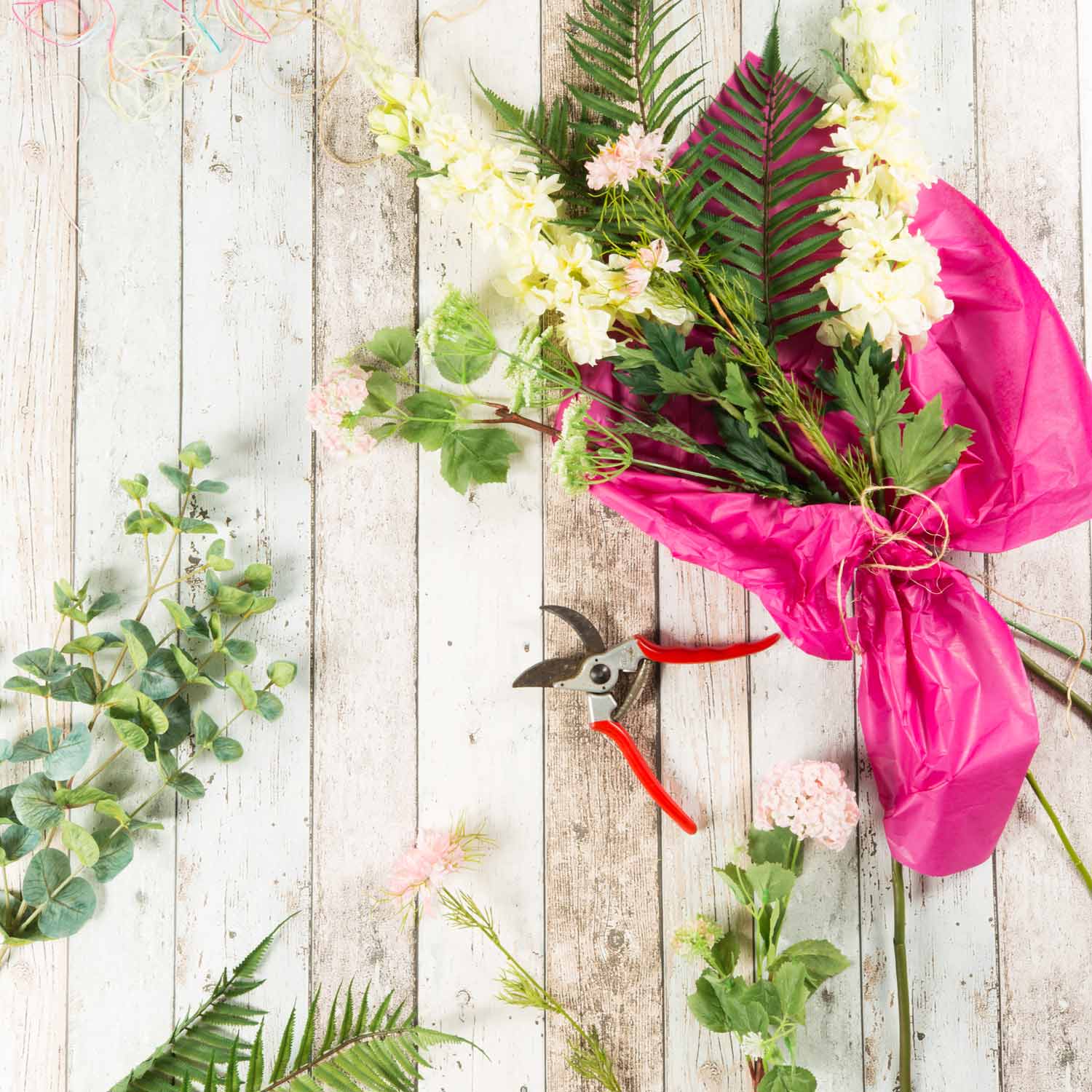 - Les fleurs et les branches peuvent être raccourcies individuellement ou utilisées individuellement pour des projets créatifs après avoir enlevé la ficelle