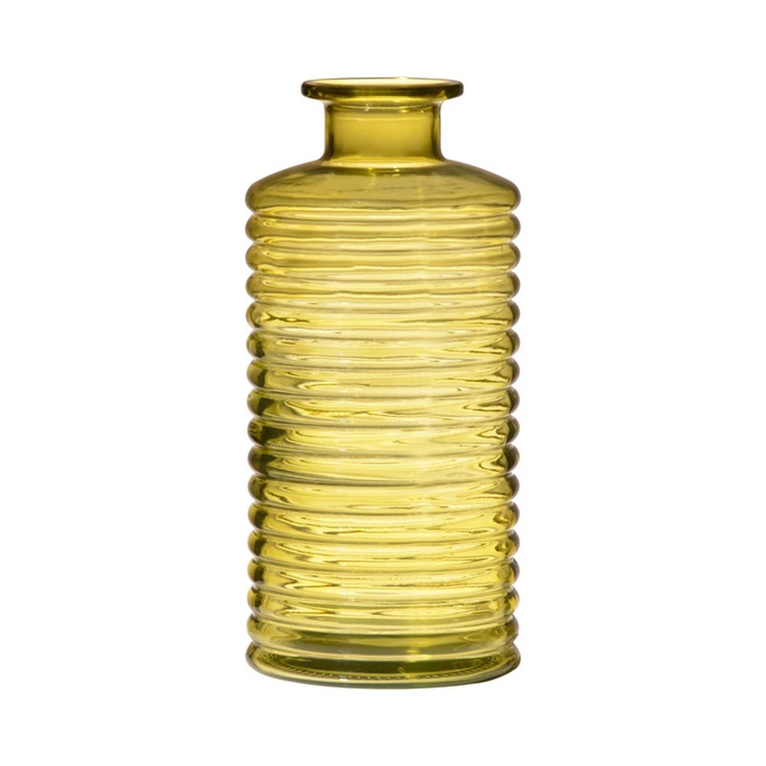 Bouteille décorative en verre STUART avec rainures, jaune-transparent, 21,5cm, Ø9,5cm