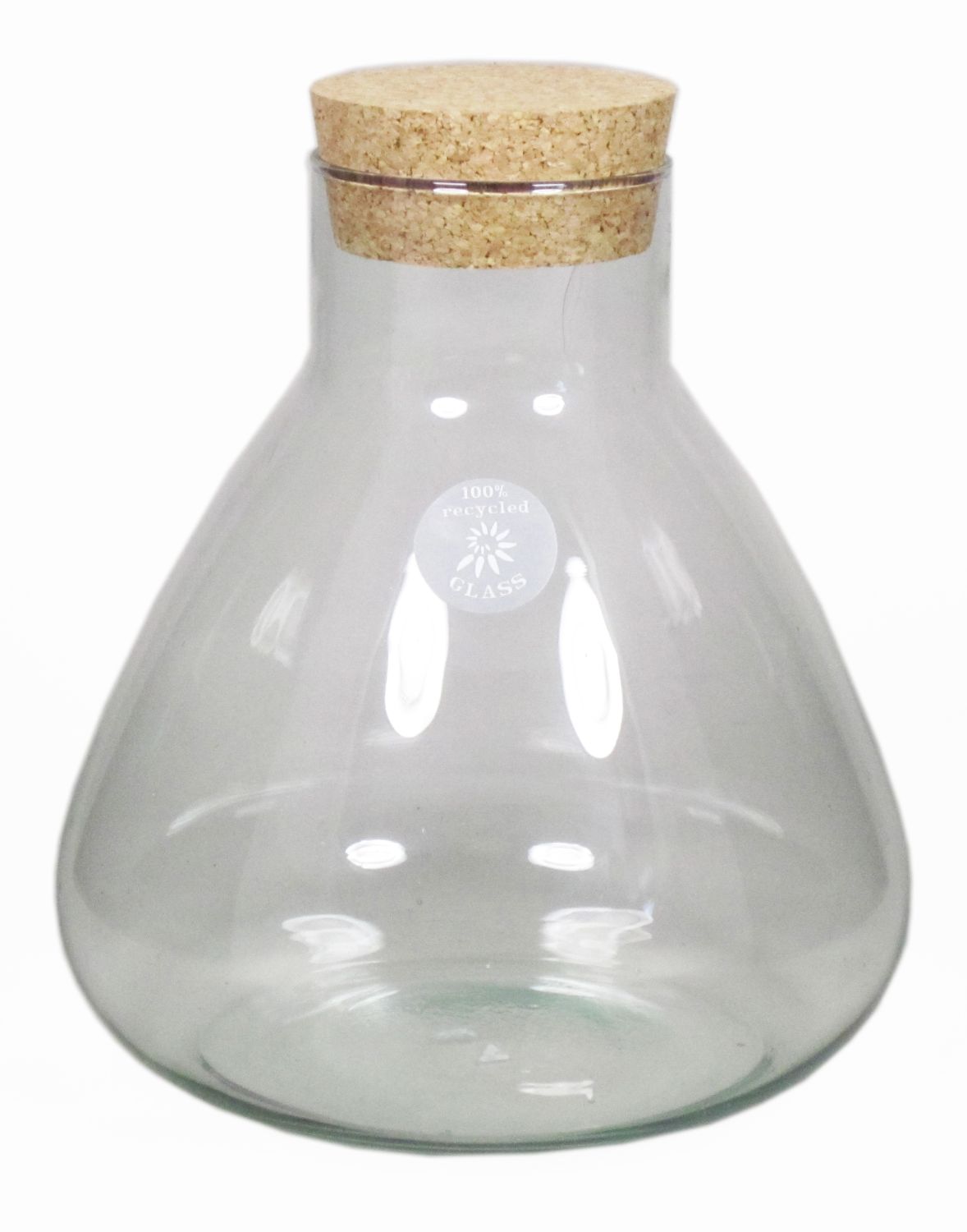 Bouteille en verre PEPPA, avec couvercle en liège, conique/rond, transparent, 26,5cm, Ø9cm/Ø22,5cm