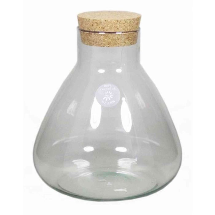 Bouteille en verre PEPPA, avec couvercle en liège, conique/rond, transparent, 32cm, Ø12cm/Ø29cm