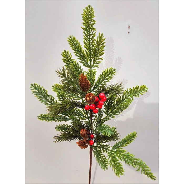 Branche artificielle VARDALIA, sapin, baies, pommes de pin, rouge-vert, 75cm