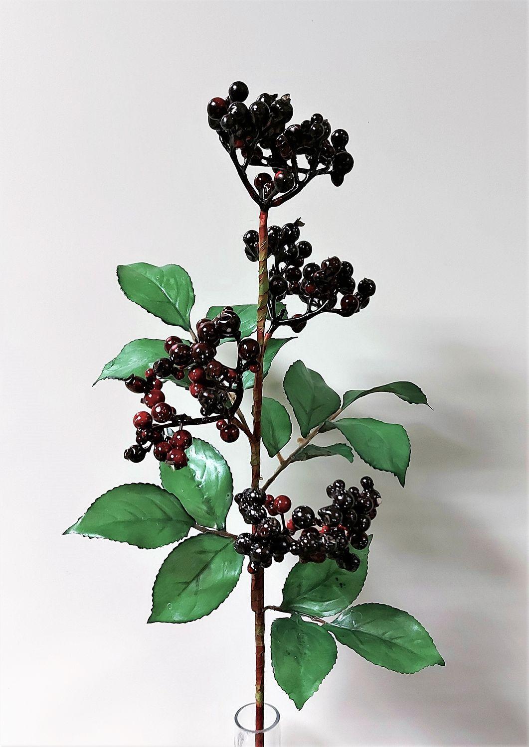 Branche de baies de sureau décorative CHATANGA avec des fruits, rouge bourgogne-noir, 60cm