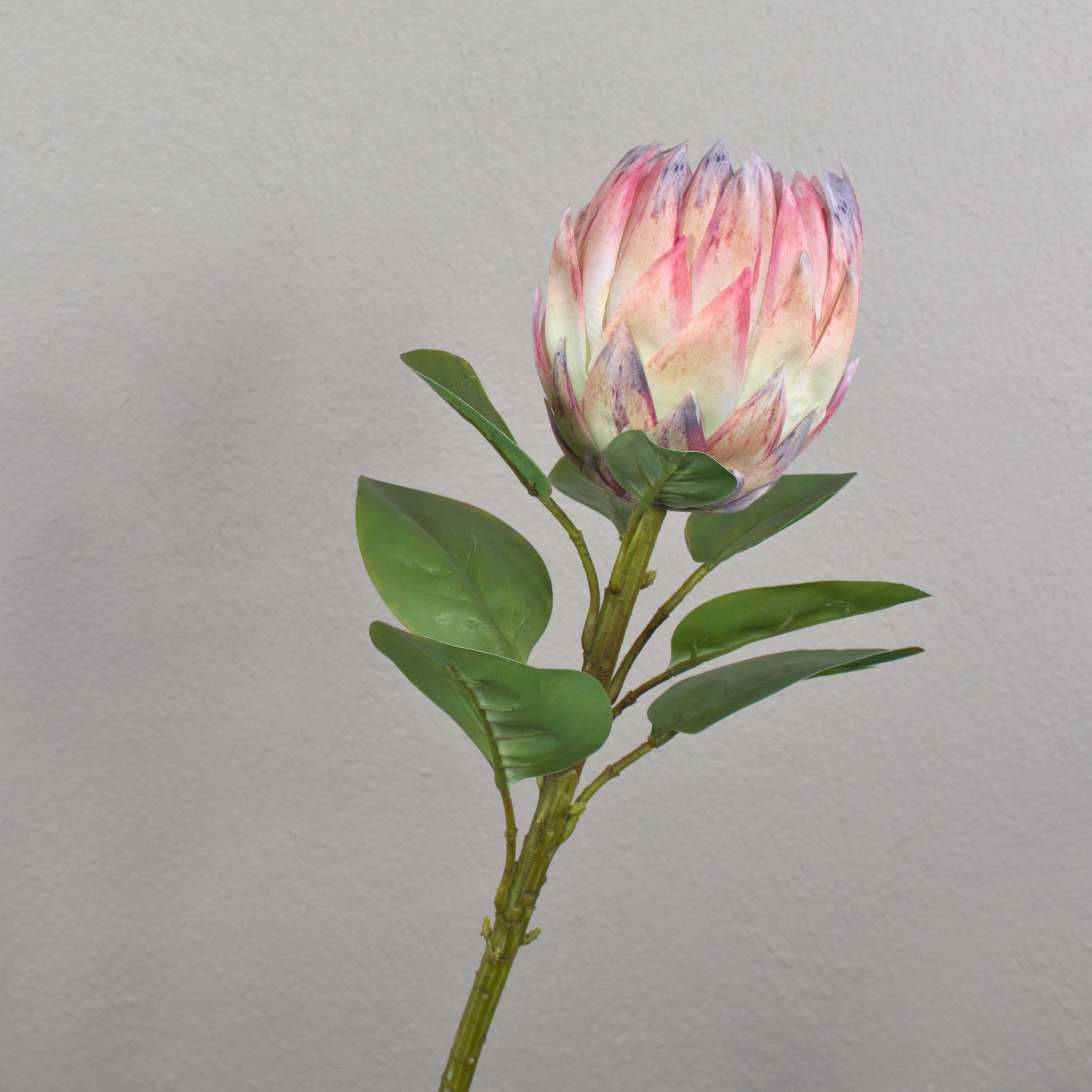 Branche de fleurs artificielle Protée royale TANIEKA, rose-blanc, 65cm
