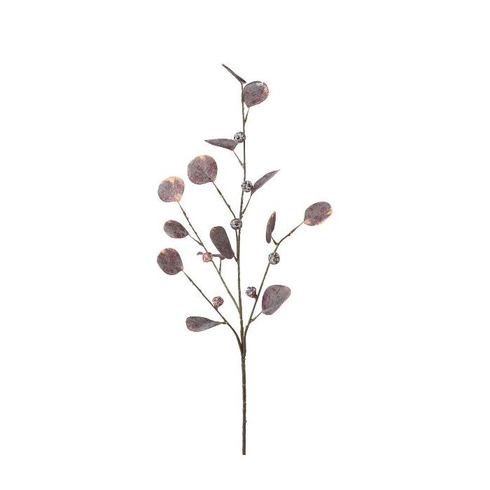 Branche décorative d'eucalyptus TRAVON avec des fruits, aubergine, 75cm