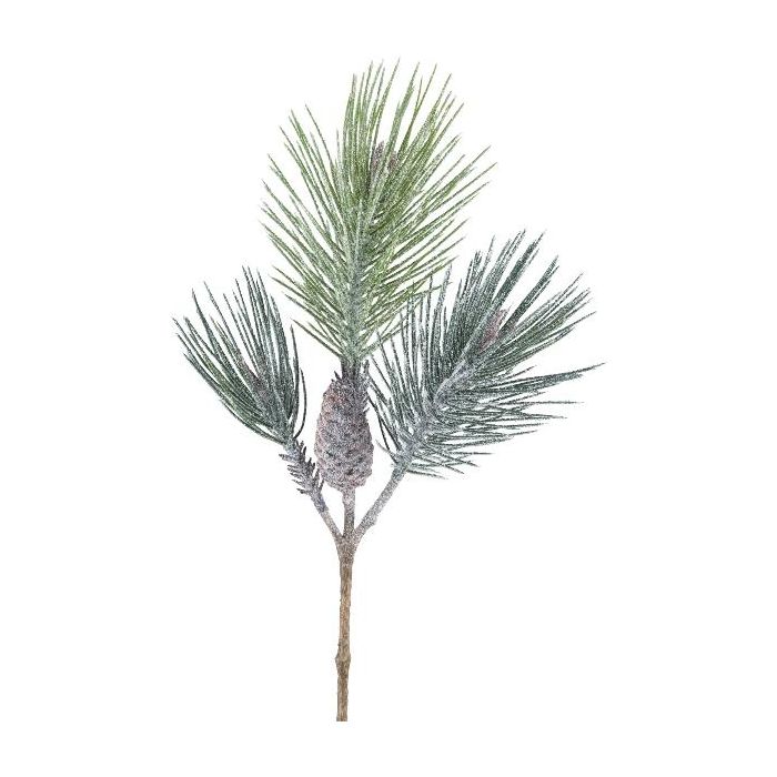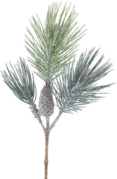 Branche décorative Pin parasol SNOLER avec des paillettes, pomme de pin, givré, vert, 60cm
