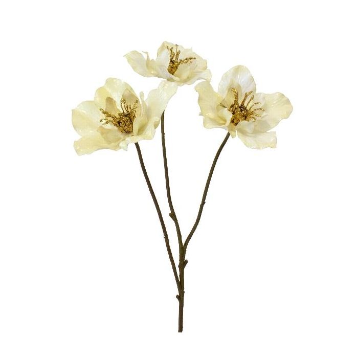 Branche décorative Rose de Noël FLOMKE, crème métallique, 55cm
