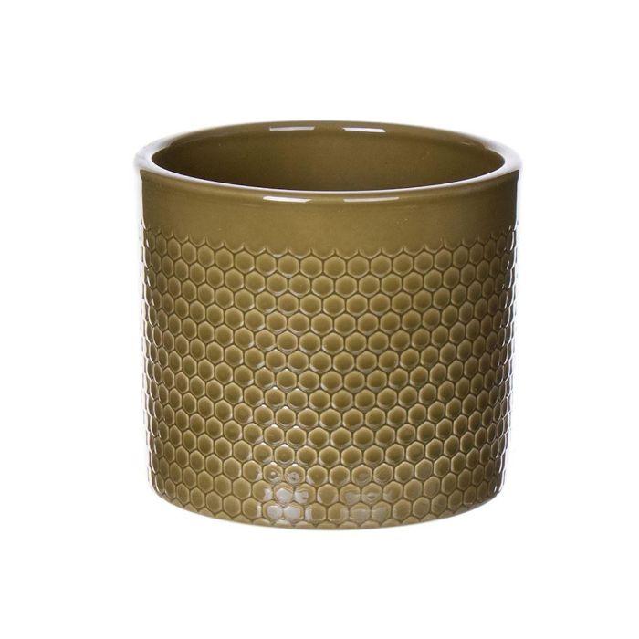 Cache-pot CINZIA en céramique, motif à pois, kaki, 22cm, Ø23cm