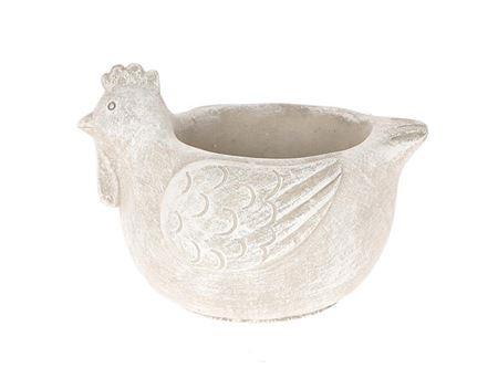 Cache-pot Poule VINURA en céramique, gris-blanc, 11x9x8,5cm