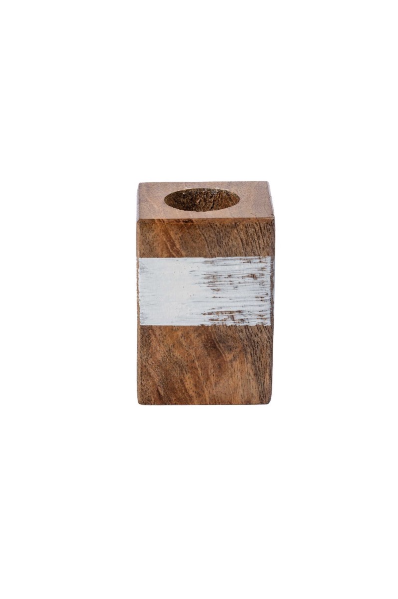 Chandelier triangulaire en bois KARLINA pour bougies chandelles, naturel-blanc, 4x4x6cm