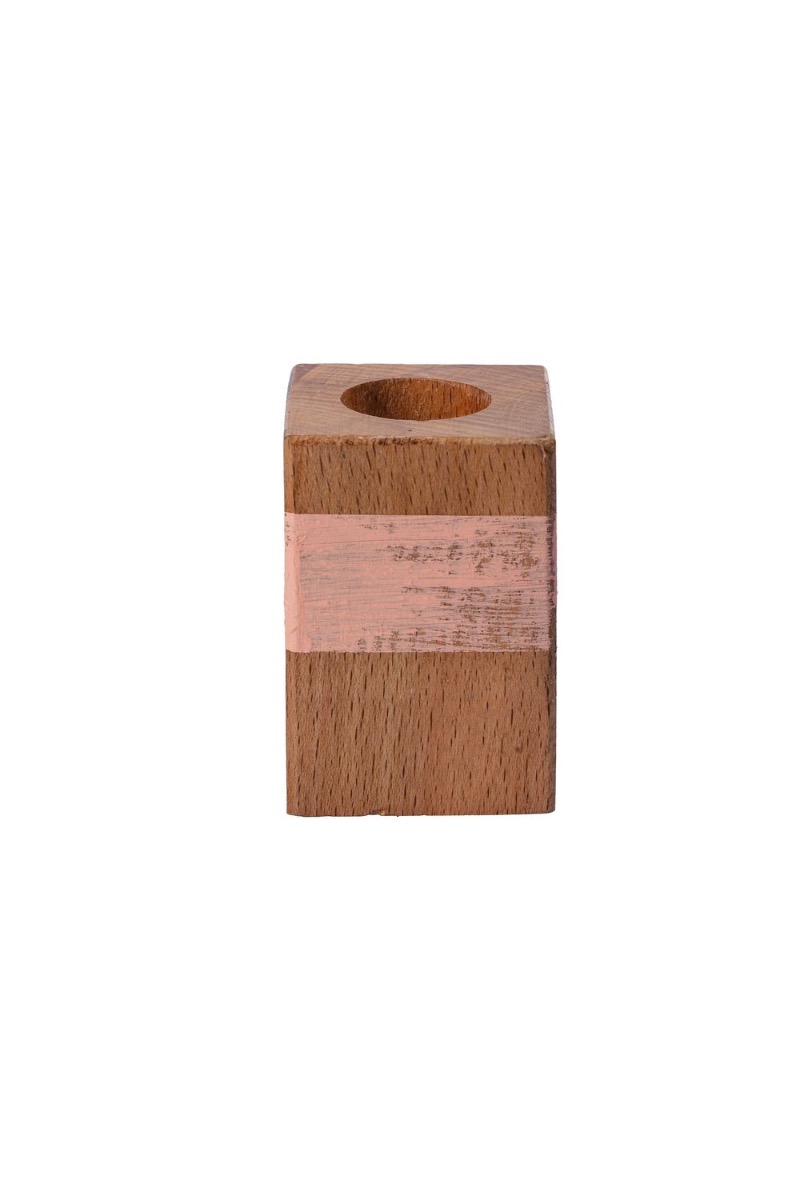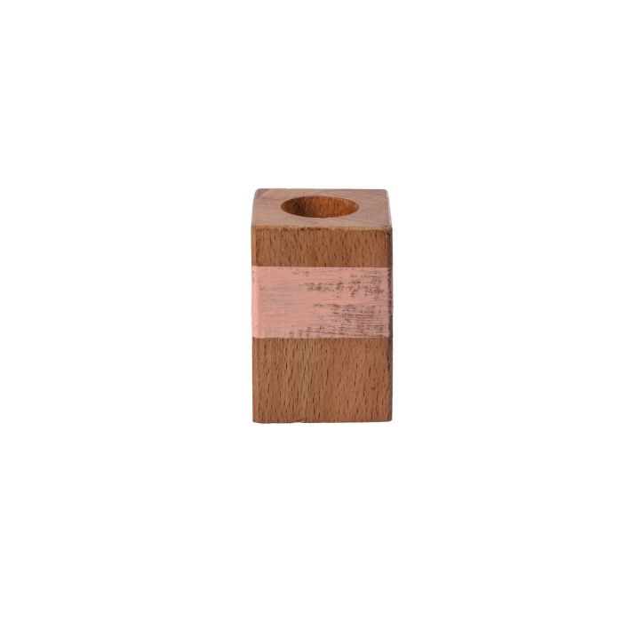 Chandelier triangulaire en bois KARLINA pour bougies chandelles, naturel-saumon, 4x4x6cm
